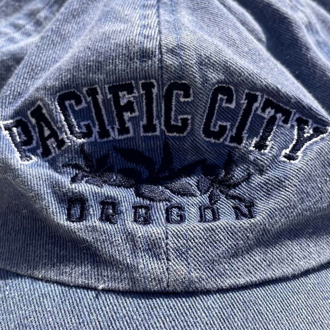 アメリカに実際にある観光地 PACIFIC CITY OREGON の文字が、刺繍でしっかり入るUS古着を取り扱う古着屋さんなどでも販売されている、現地の地元のおじさんが被っていそうな経年変化がとても良い感じのくすみカラーCAPになります。