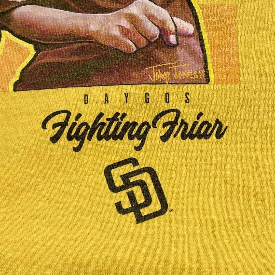 アメリカ文化の雰囲気とパロディー感がとても良い感じのパドレスカラーの1着です。