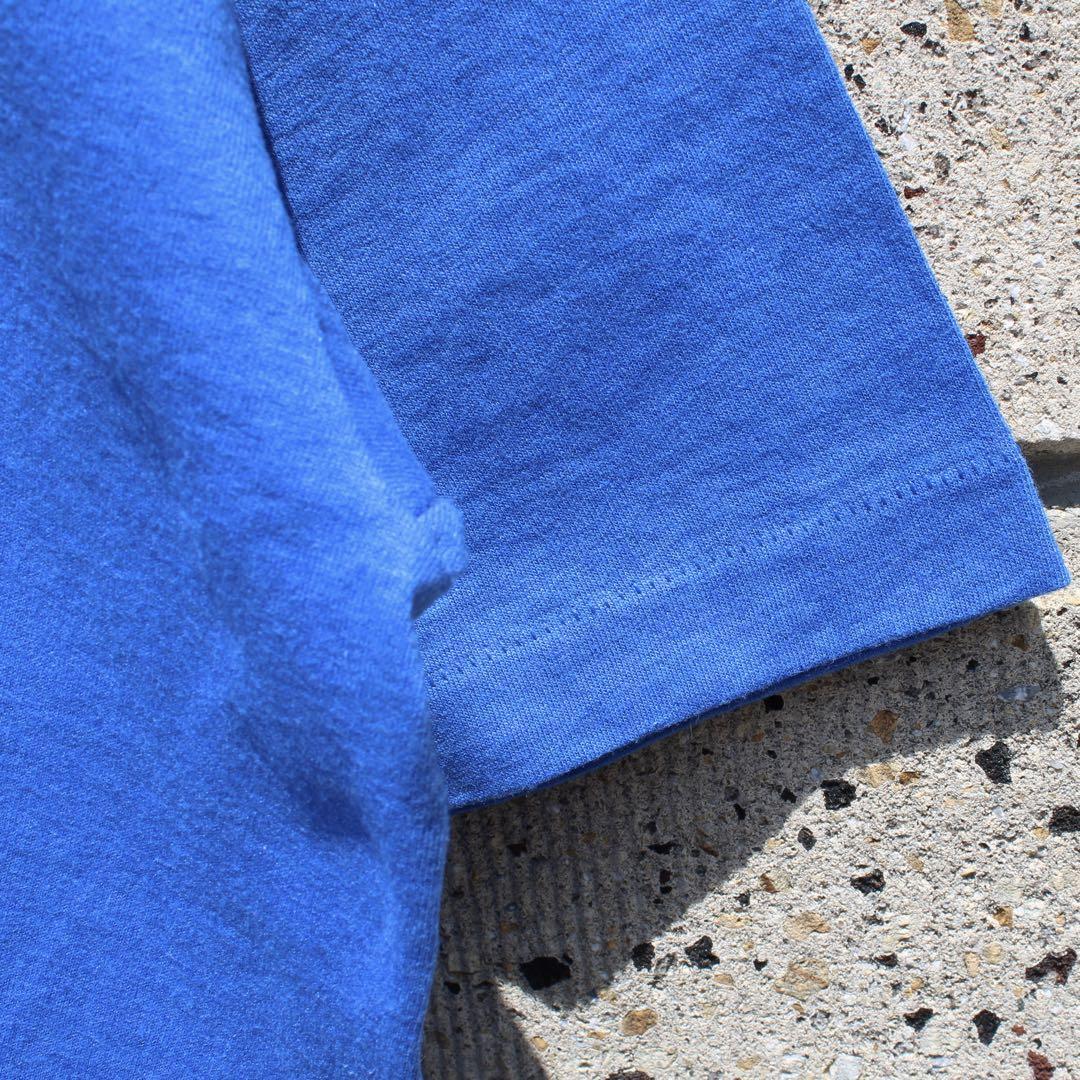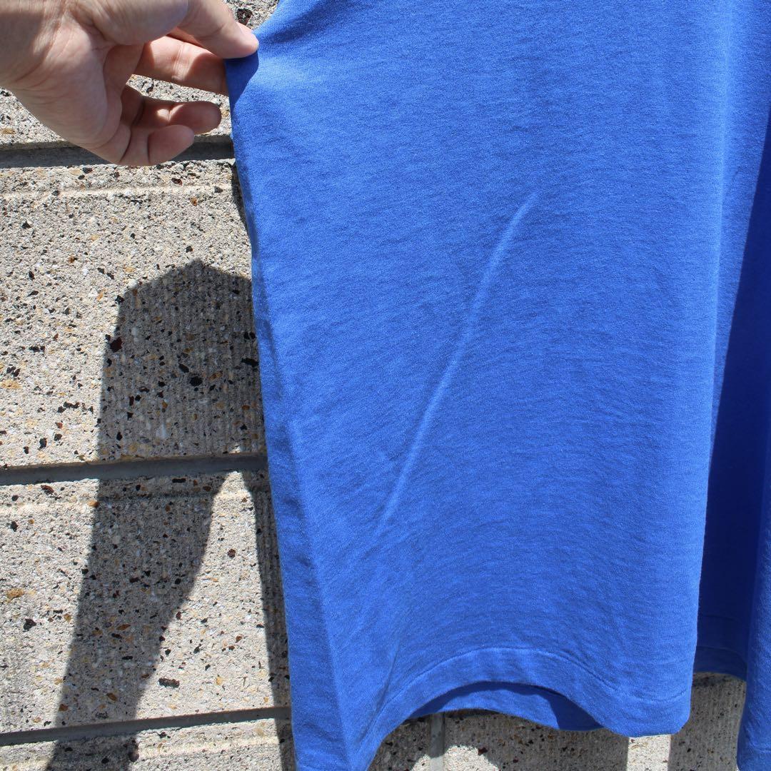 ブルーの単色 無地 クルーネック 古着 Tシャツ になります。