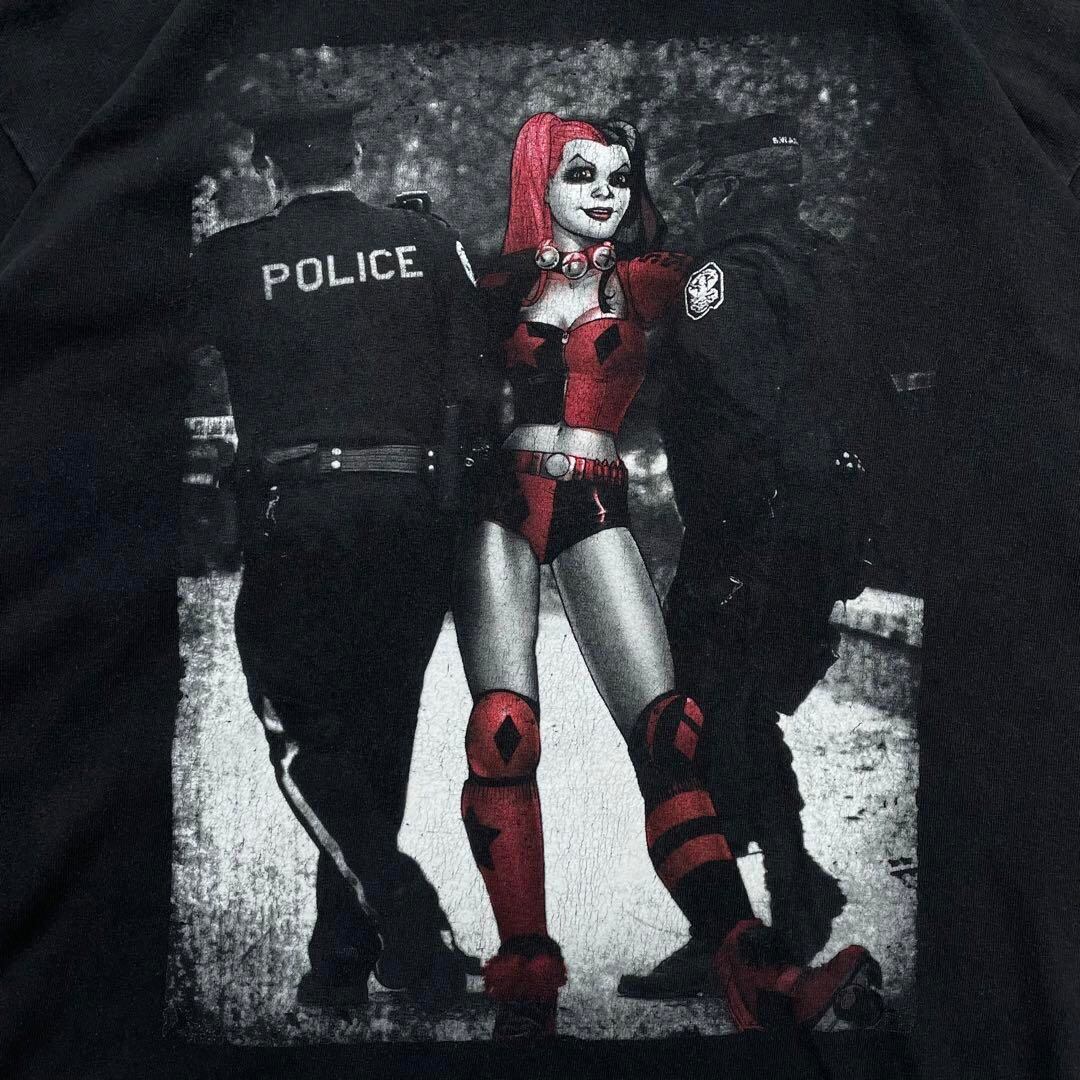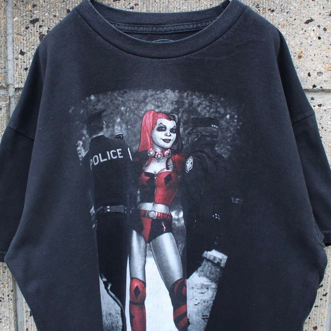 【XLサイズ】バッドマンオフィシャル ハーレークイーン 古着 黒 Tシャツ フェード〇
