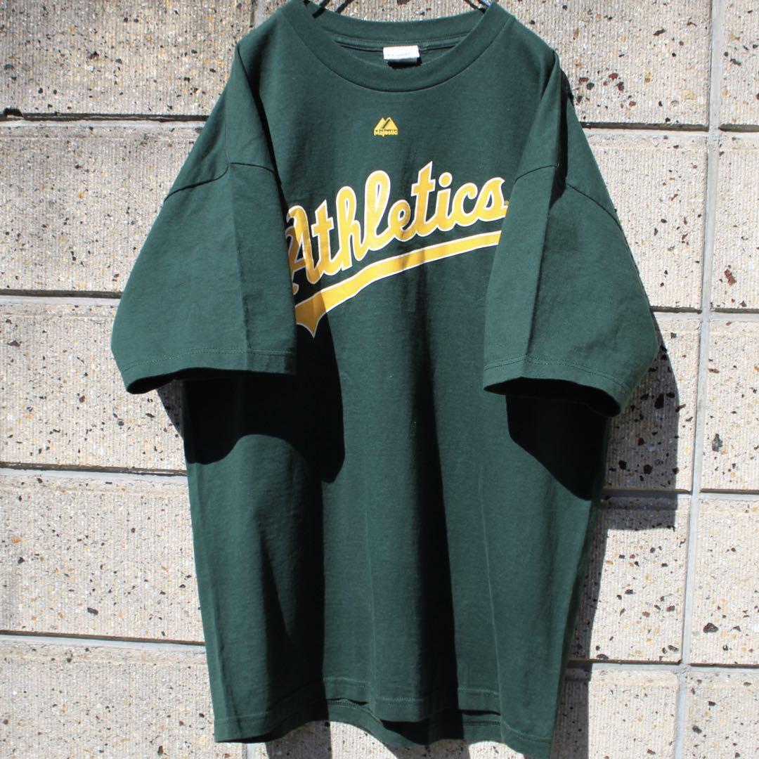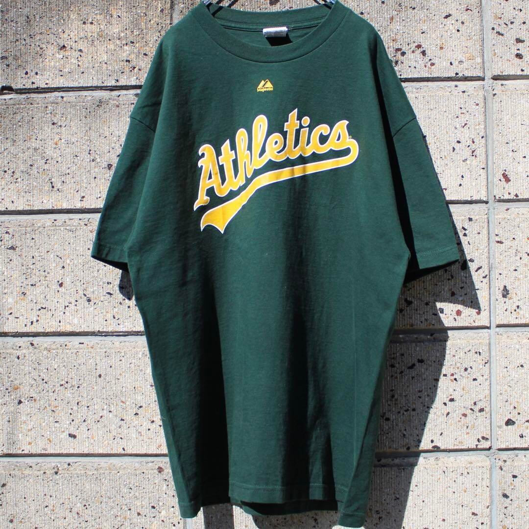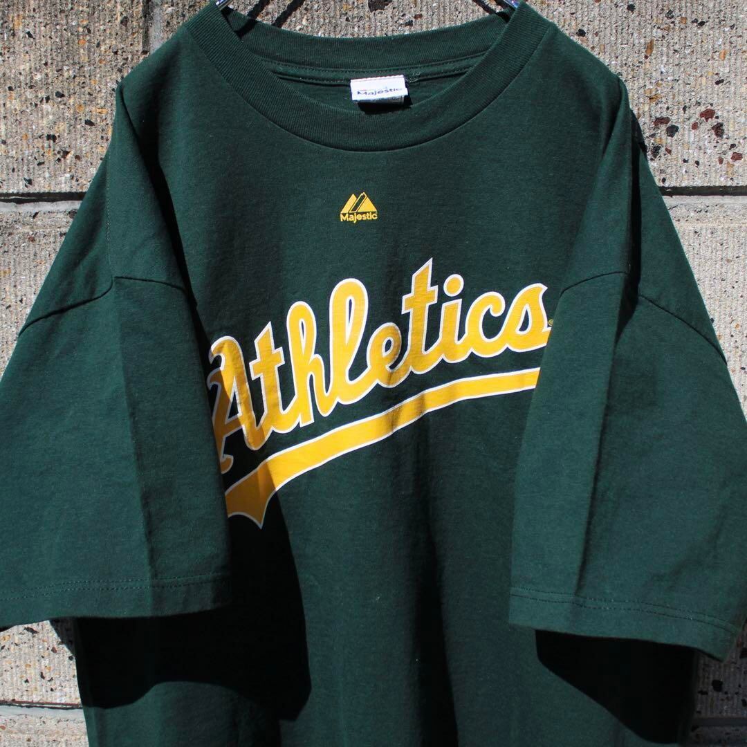 Majestic 00's オークランド アスレチックスの古着 チーム Tシャツになります。