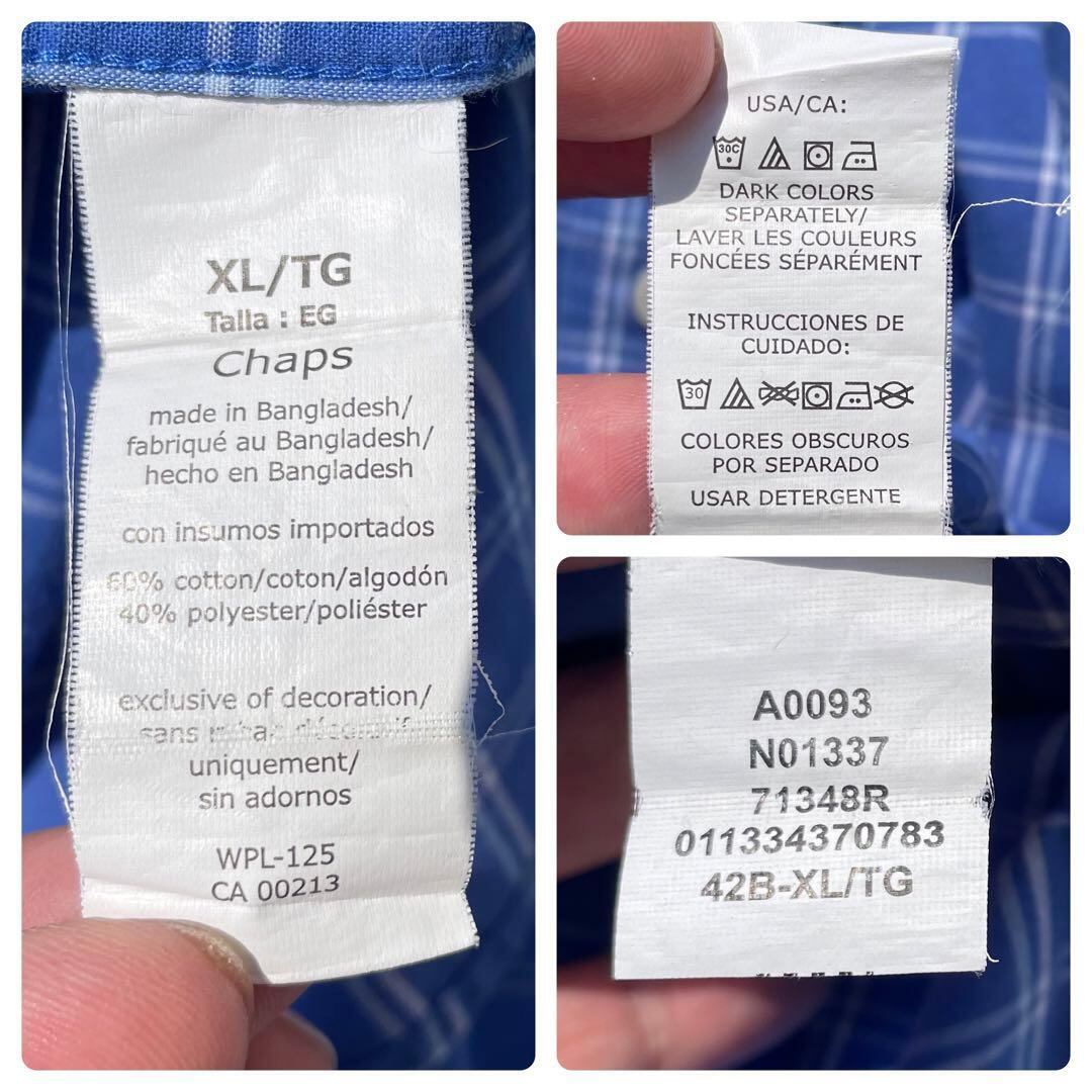 【XLサイズ】CHAPS R.L ロゴ刺繍 チェック柄 ビッグシルエット 古着 長袖シャツ