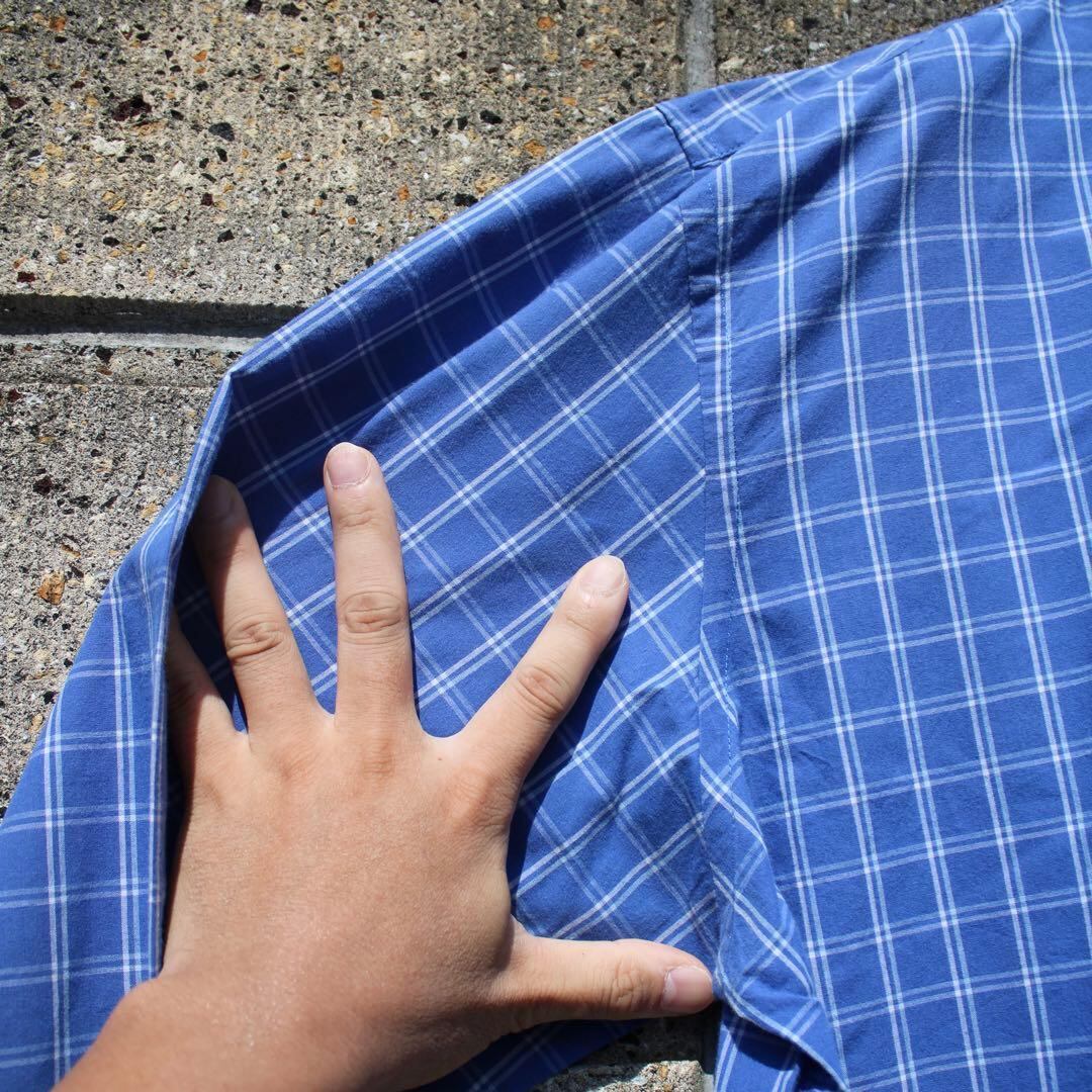丈 身幅などの各所大きめ 広めのゆったりとしたサイズ感の古着 長袖シャツになります。