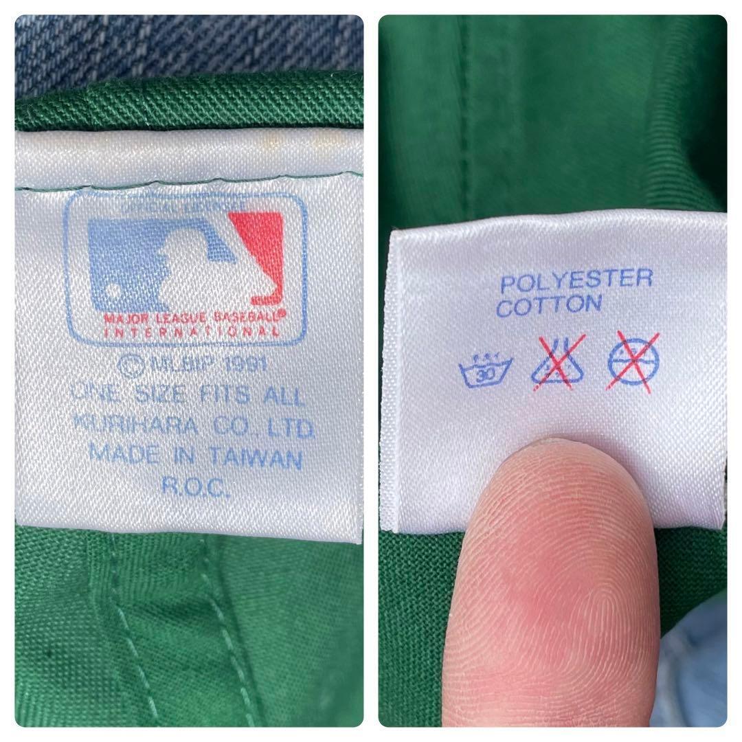 【FREE size】90's MLB "OAKLAND" ATHLETICS バイカラー 緑 × 黄 キャップ MLB/1991's