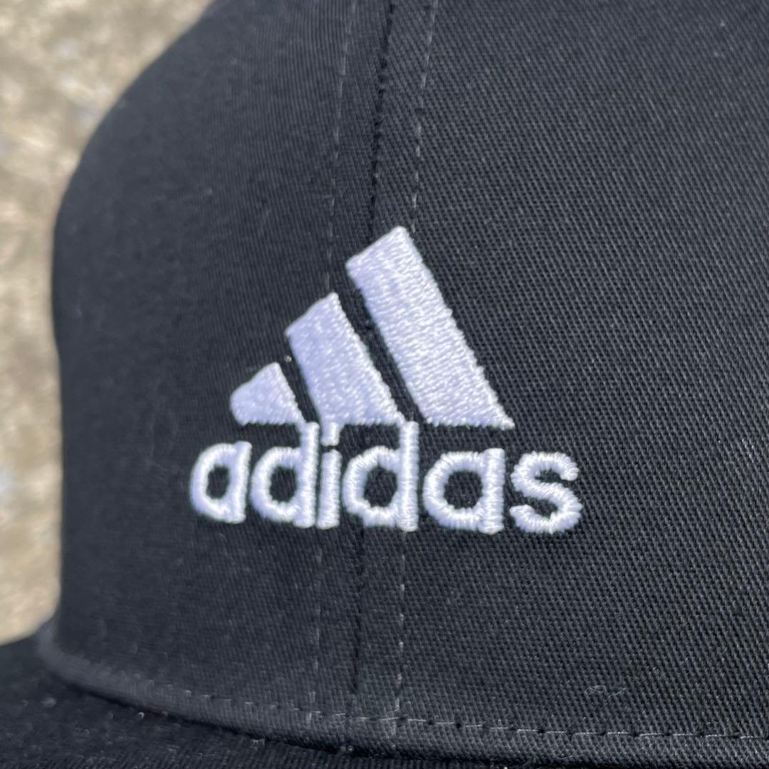 adidas ロゴ刺繍 黒 × 銀 スナップバック キャップになります。