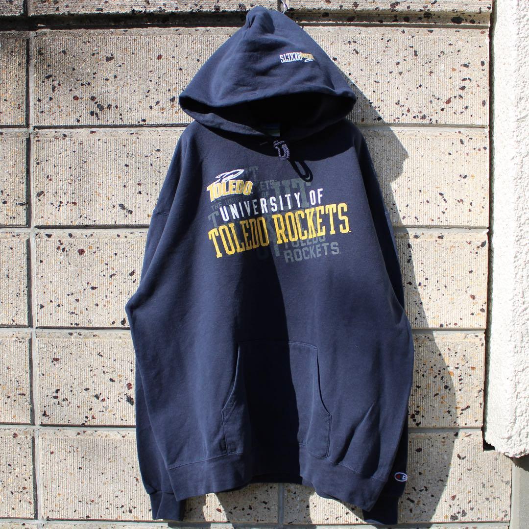 【XLサイズ】Champion US企画 × 米国オハイオ州トレド大学 "ROCKETS"古着 パーカー