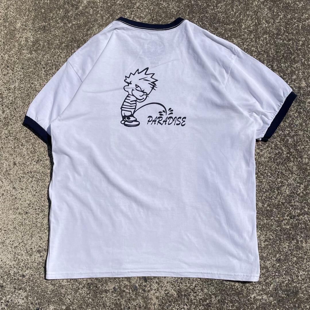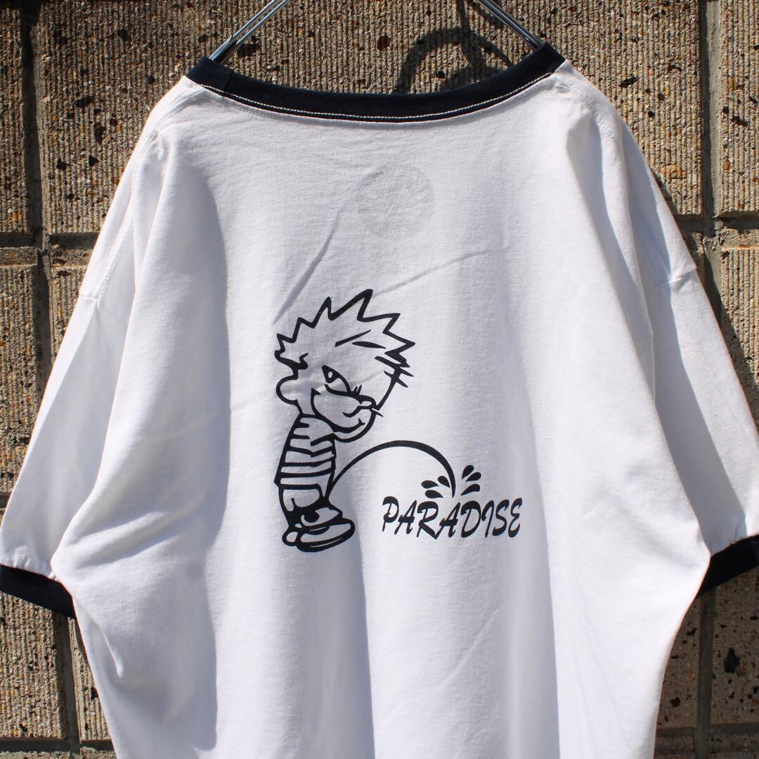 【XLサイズ】USA製 Paradise NYCアメリカンキャラクター 古着 リンガーTシャツ