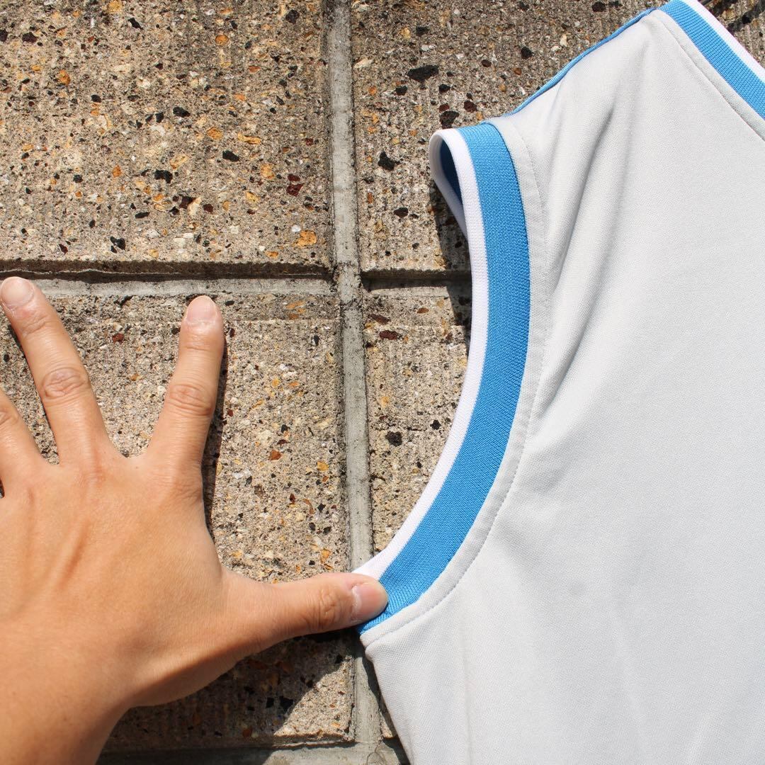 立体構造の形、凸凹の生地 肌触りにより汗をかいてもベタつかず衣服内をドライな状態にキープする素材。