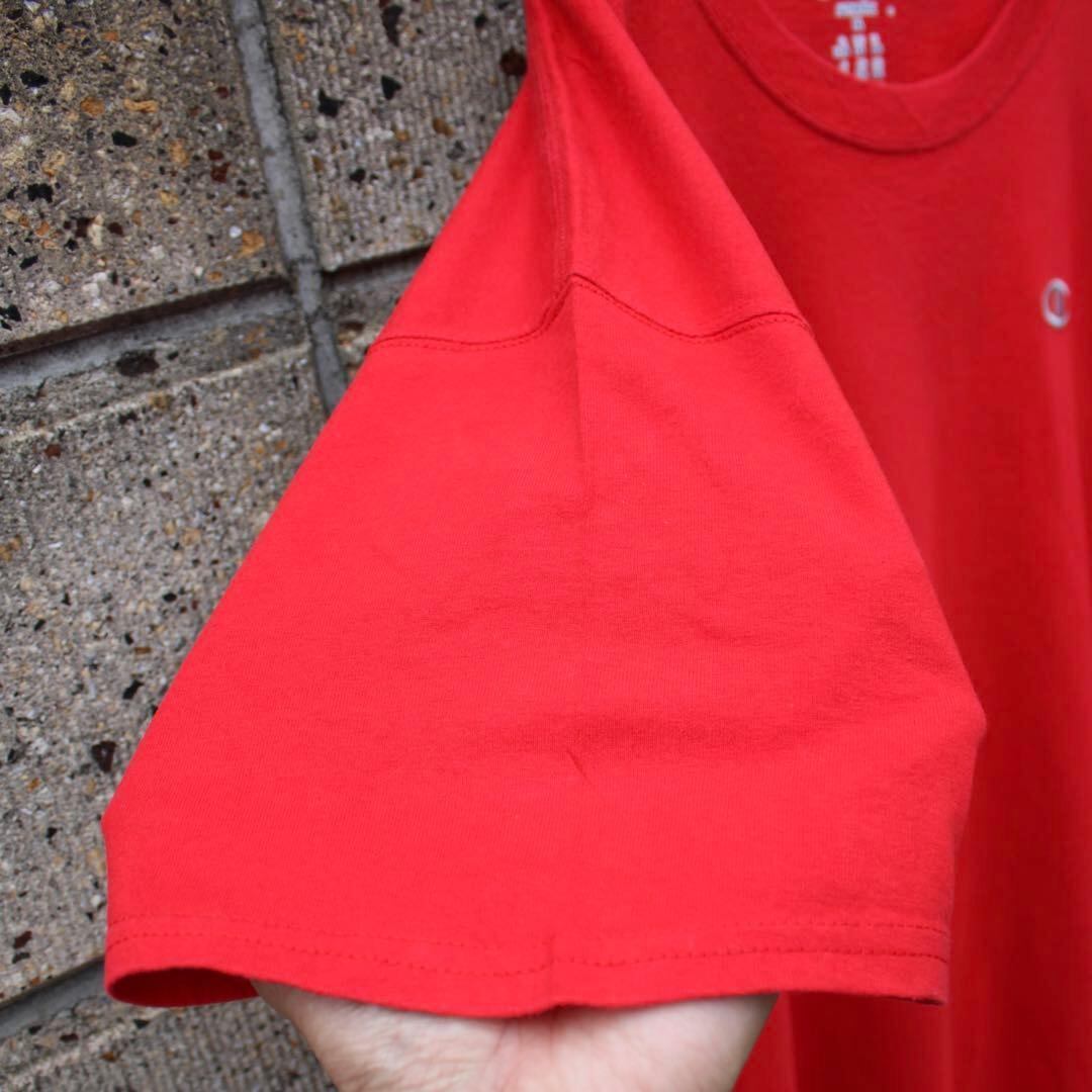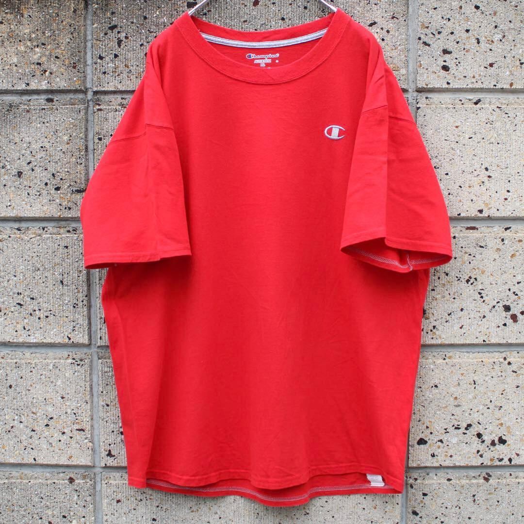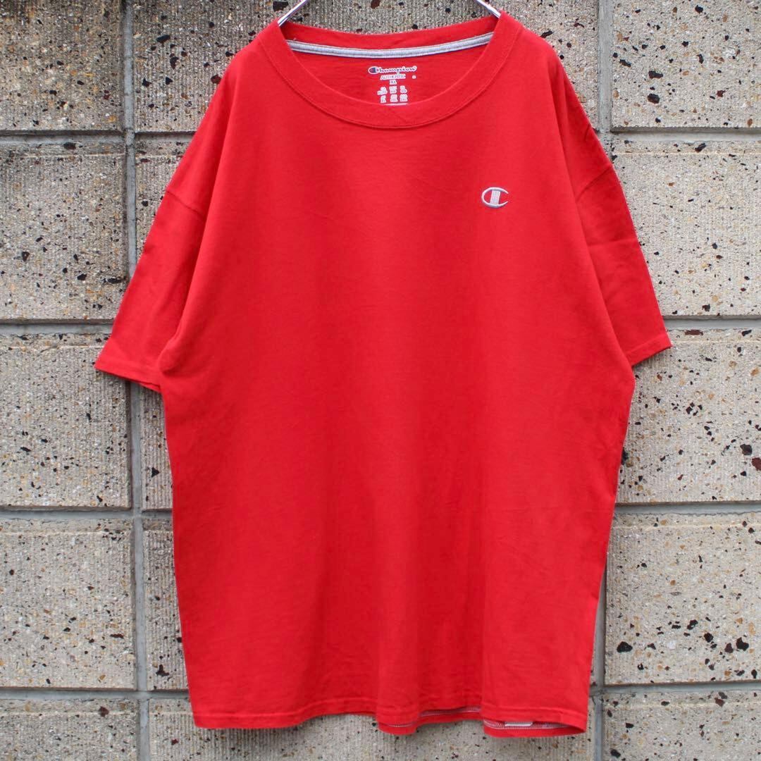 【XLサイズ】Champion ロゴ刺繍 大きめ 赤 古着 Tシャツ