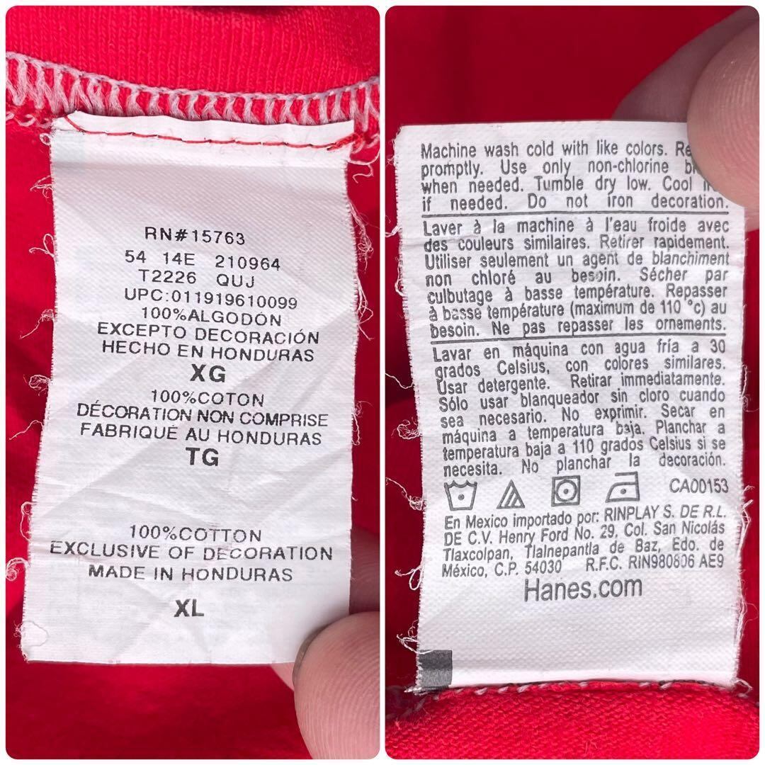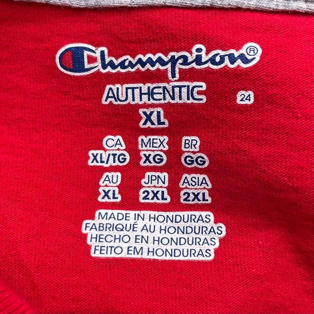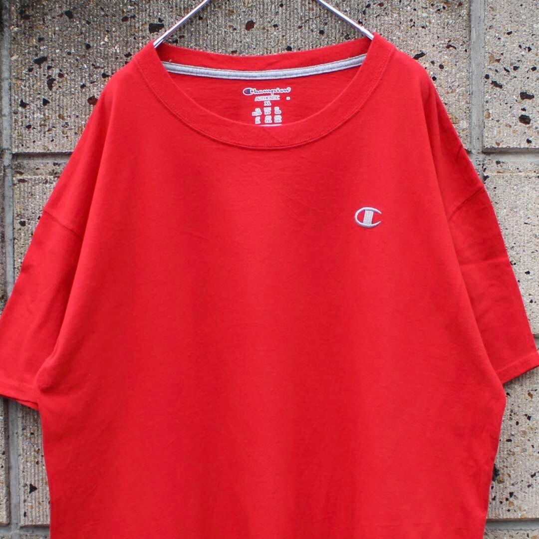 【XLサイズ】Champion ロゴ刺繍 大きめ 赤 古着 Tシャツ