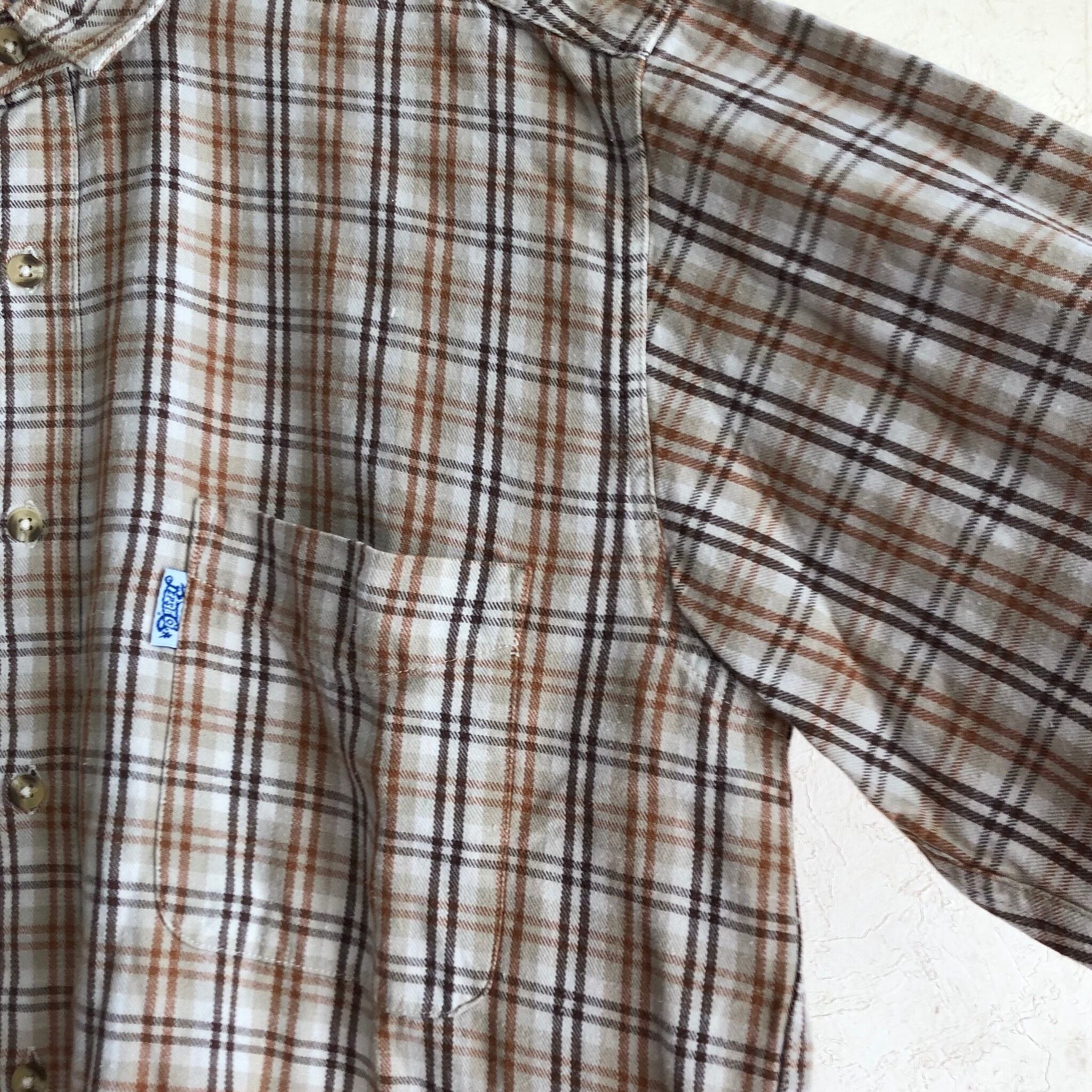 落ち着いたカラーのチェック柄、大きめサイズの長袖シャツになります。