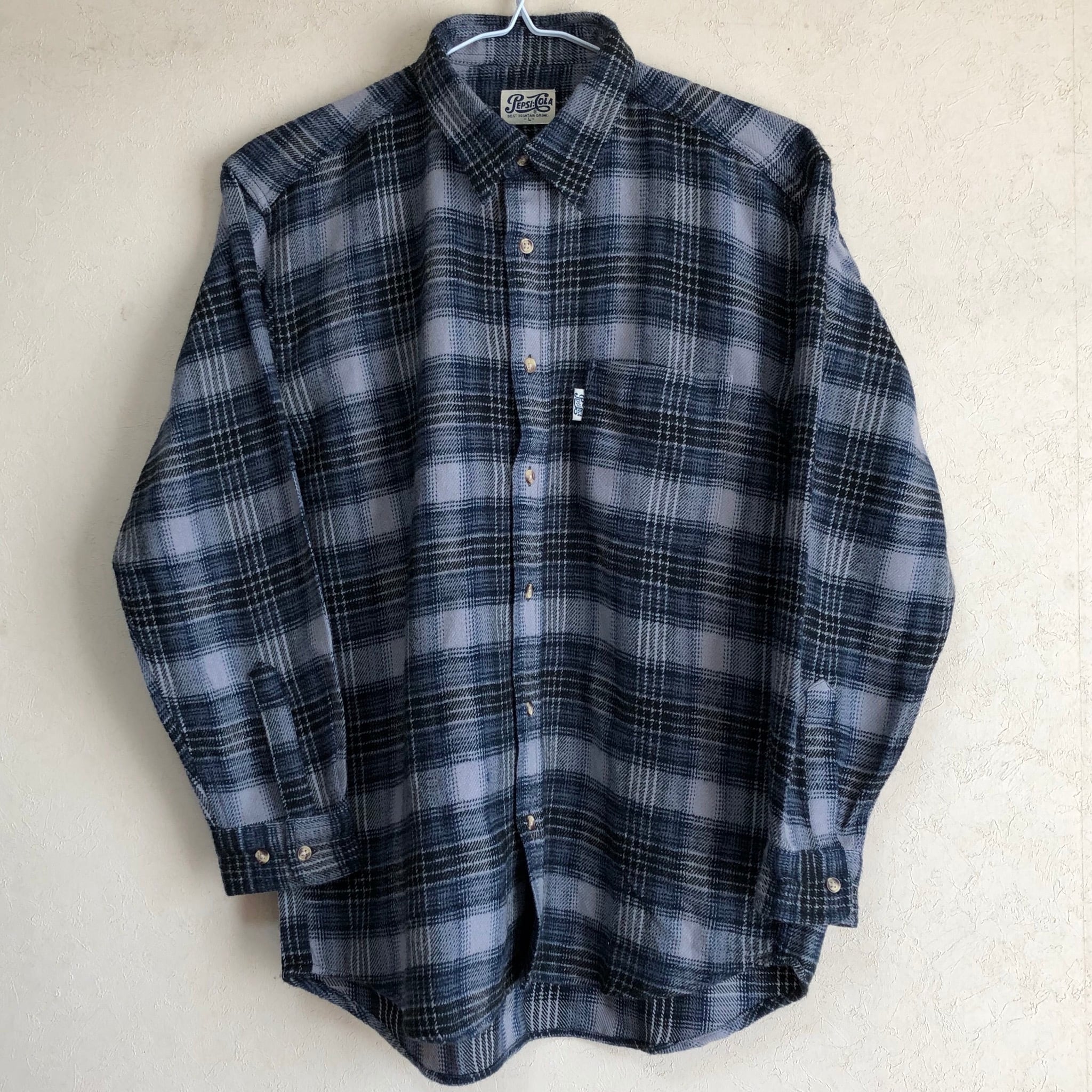 【Lサイズ】PEPSI-COLA ネルシャツ チェック柄 純正タグ ほわほわ生地 企業ものの古着