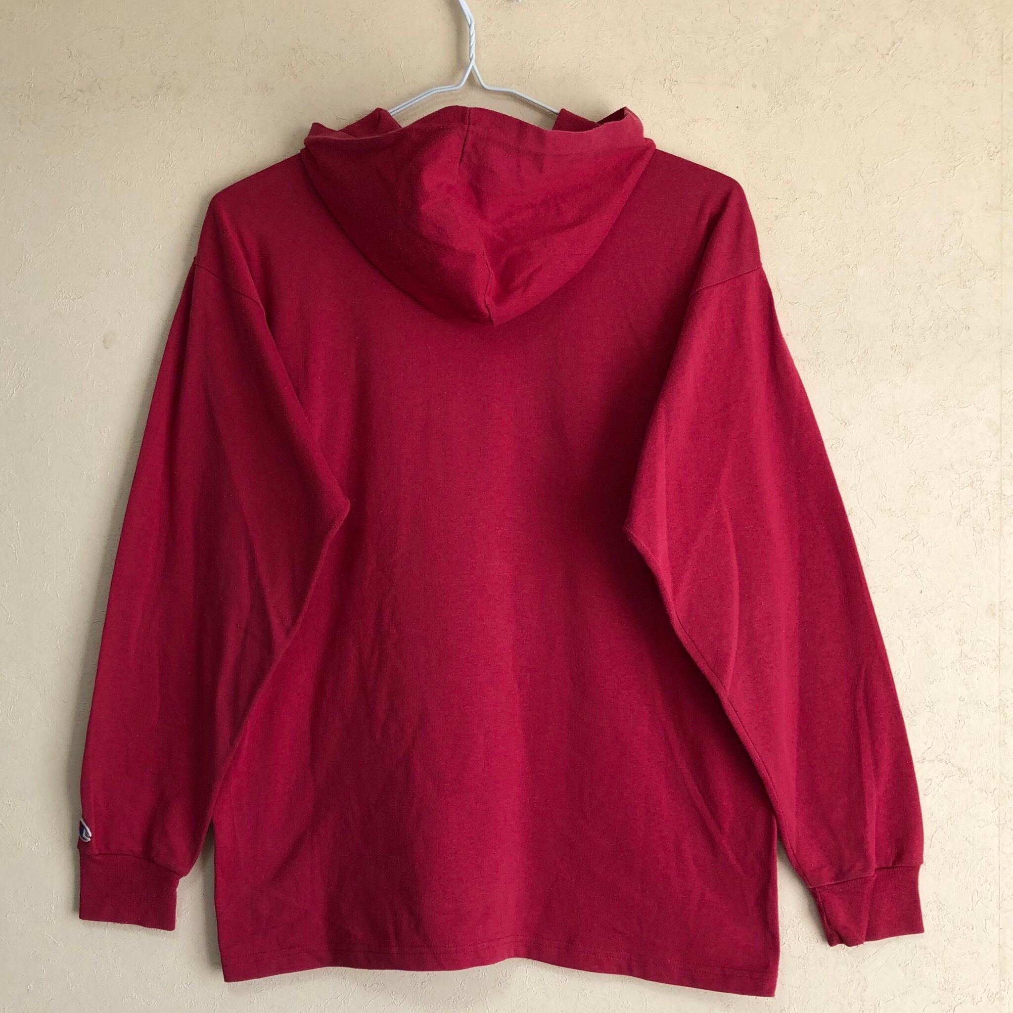 USA製 90s チャンピオンの綿ポリ素材、好配色のフード付きロングスリーブになります。