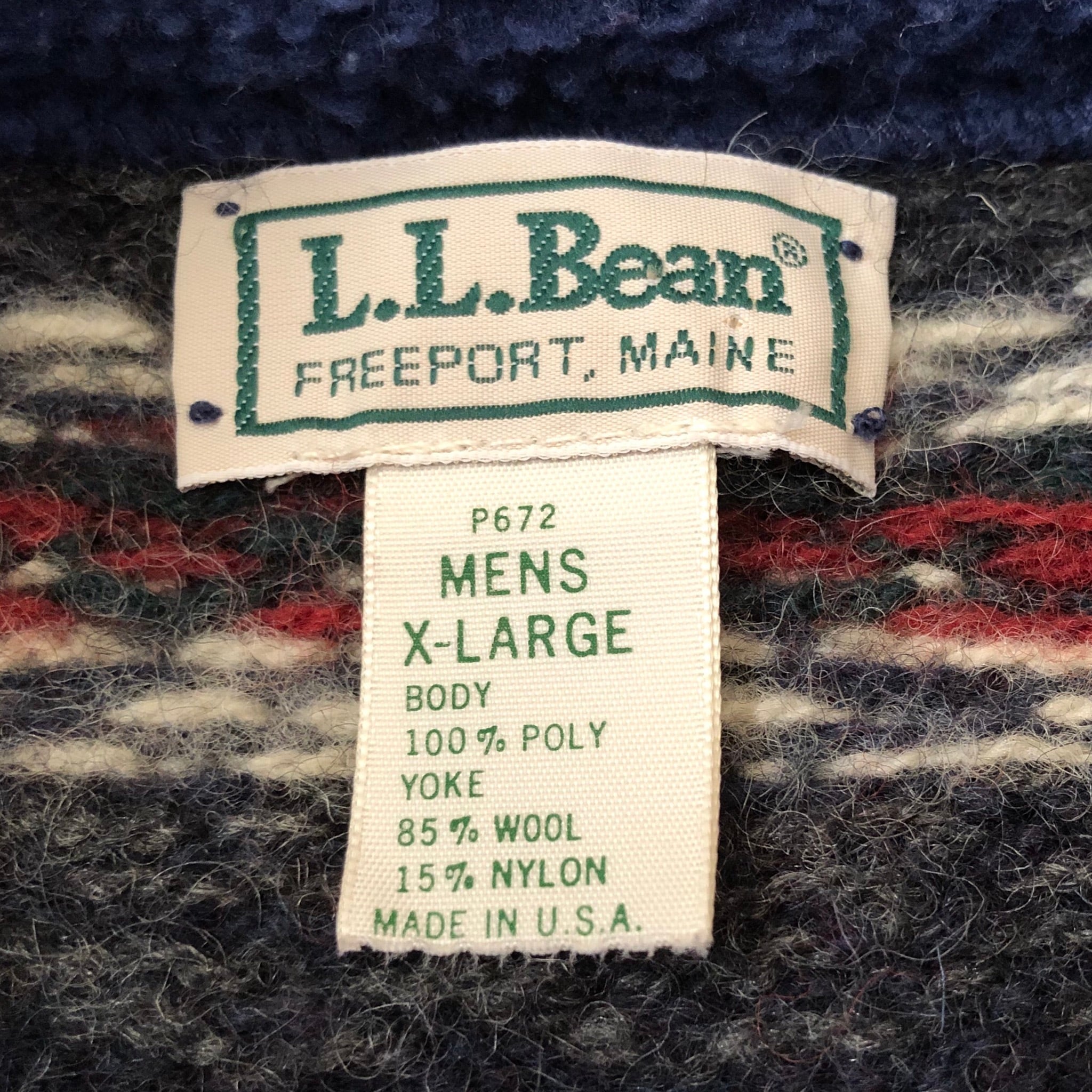 【XLサイズ】USA製 L.L.Bean プルオーバー フリースボアジャケット ノルディック柄切り替え生地
