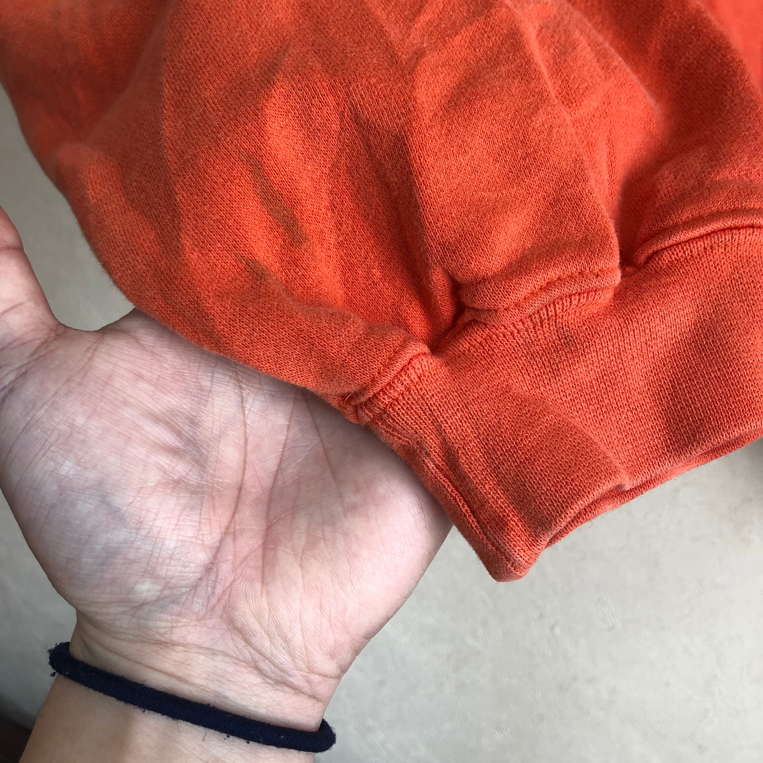 スクールカラーのオレンジボディの丈 幅のあるナイキのスウェットになります。