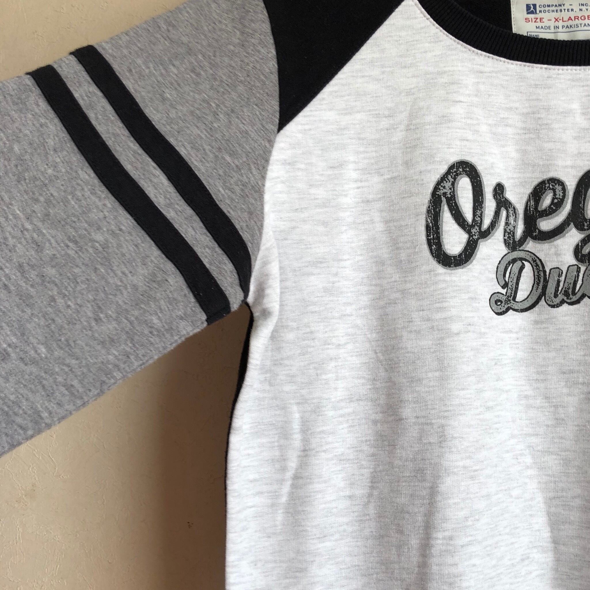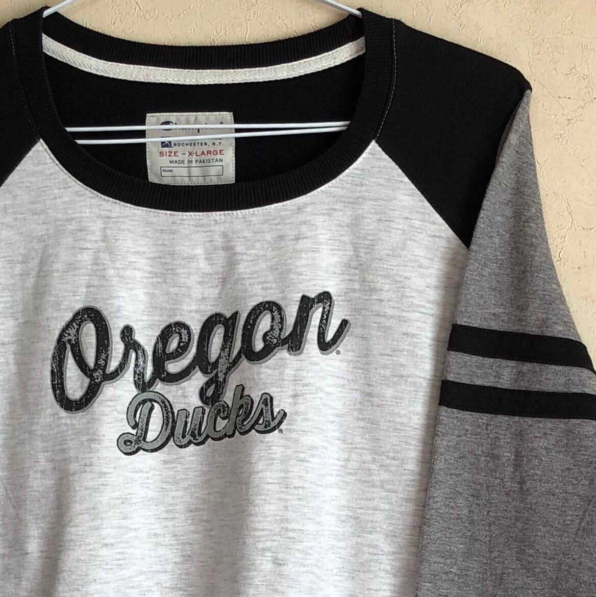 【XLサイズ】CHAMPION ”Oregon Ducks" ライトスウェット ラグラン袖 ランタグ カレッジものの古着