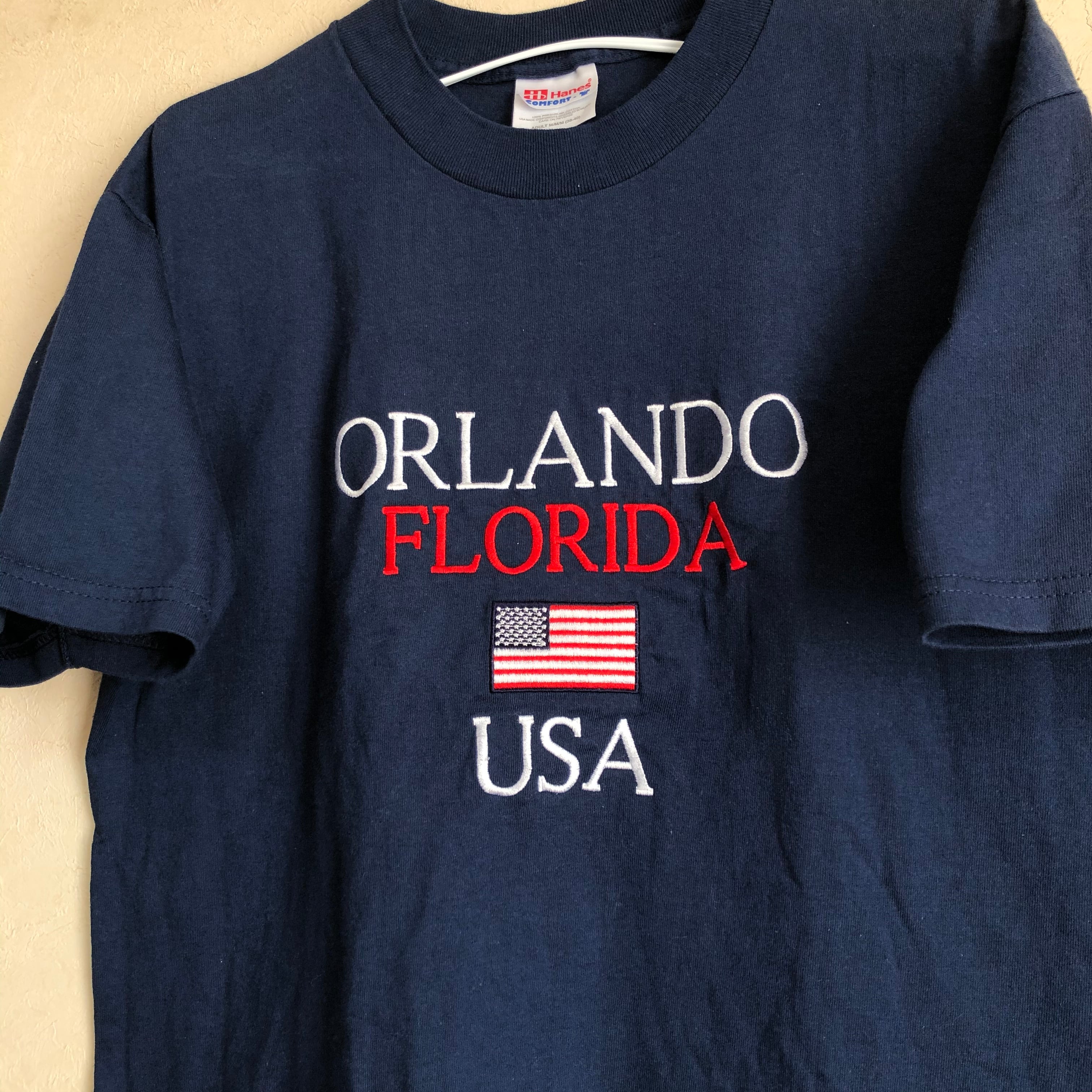 【Mサイズ】Hanes 90s USA FLORIDA ORLANDO 星条旗入り Tシャツ