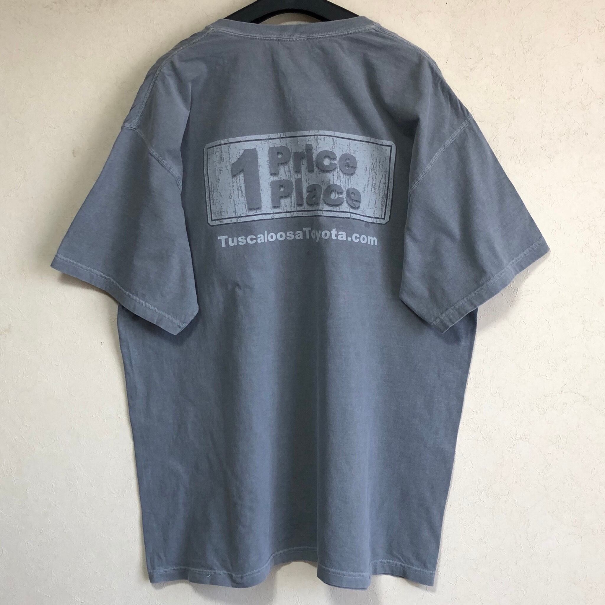 【XLサイズ】"US TOYOTA" 染めもの淡い色 両面プリント Tシャツ 企業もの古着