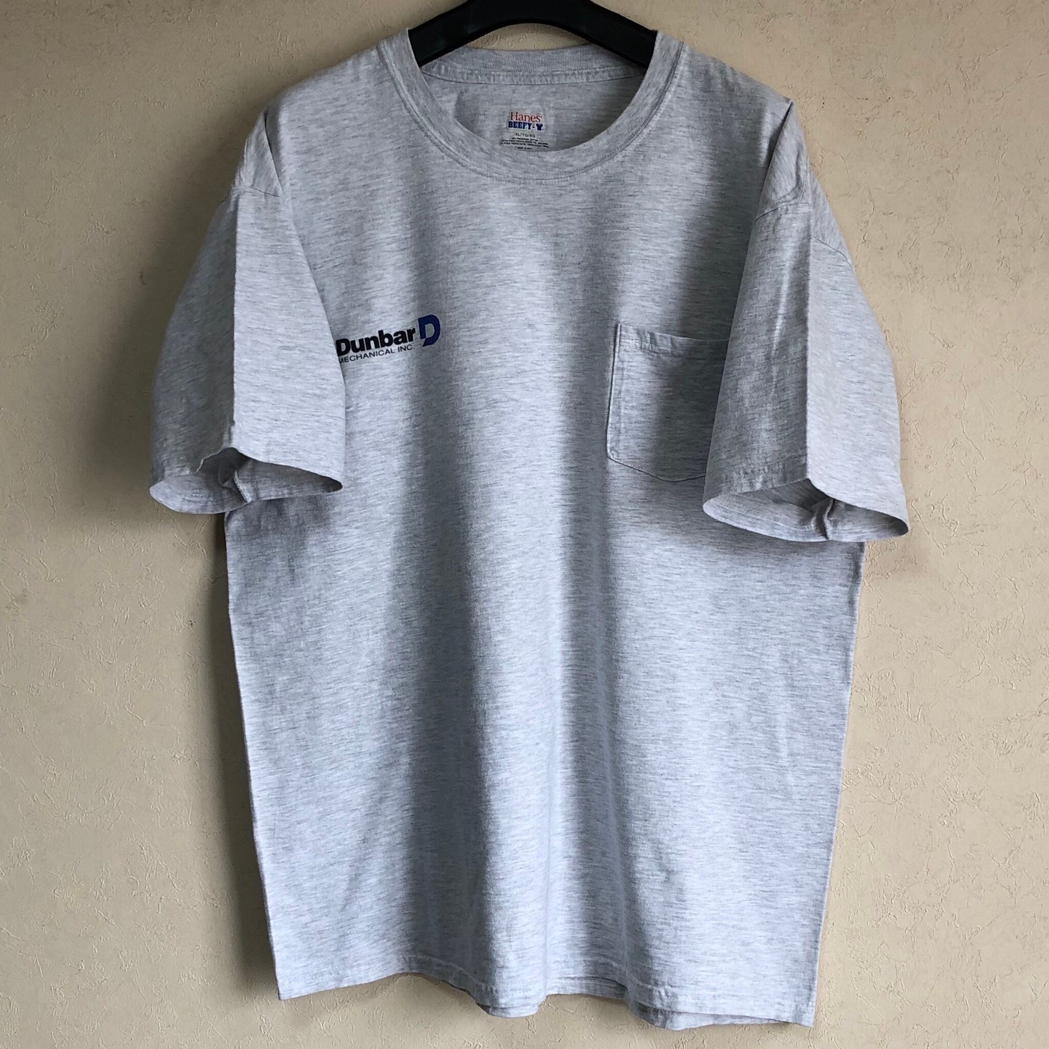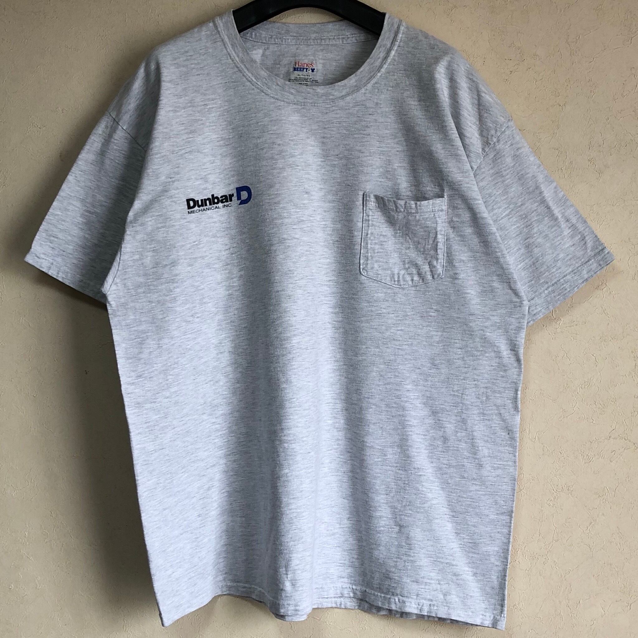 【XLサイズ】"Dunbar MECHANICAL INC."機械装置施工 胸ポケット付き Tシャツ 薄いヘザーグレー US企業もの古着