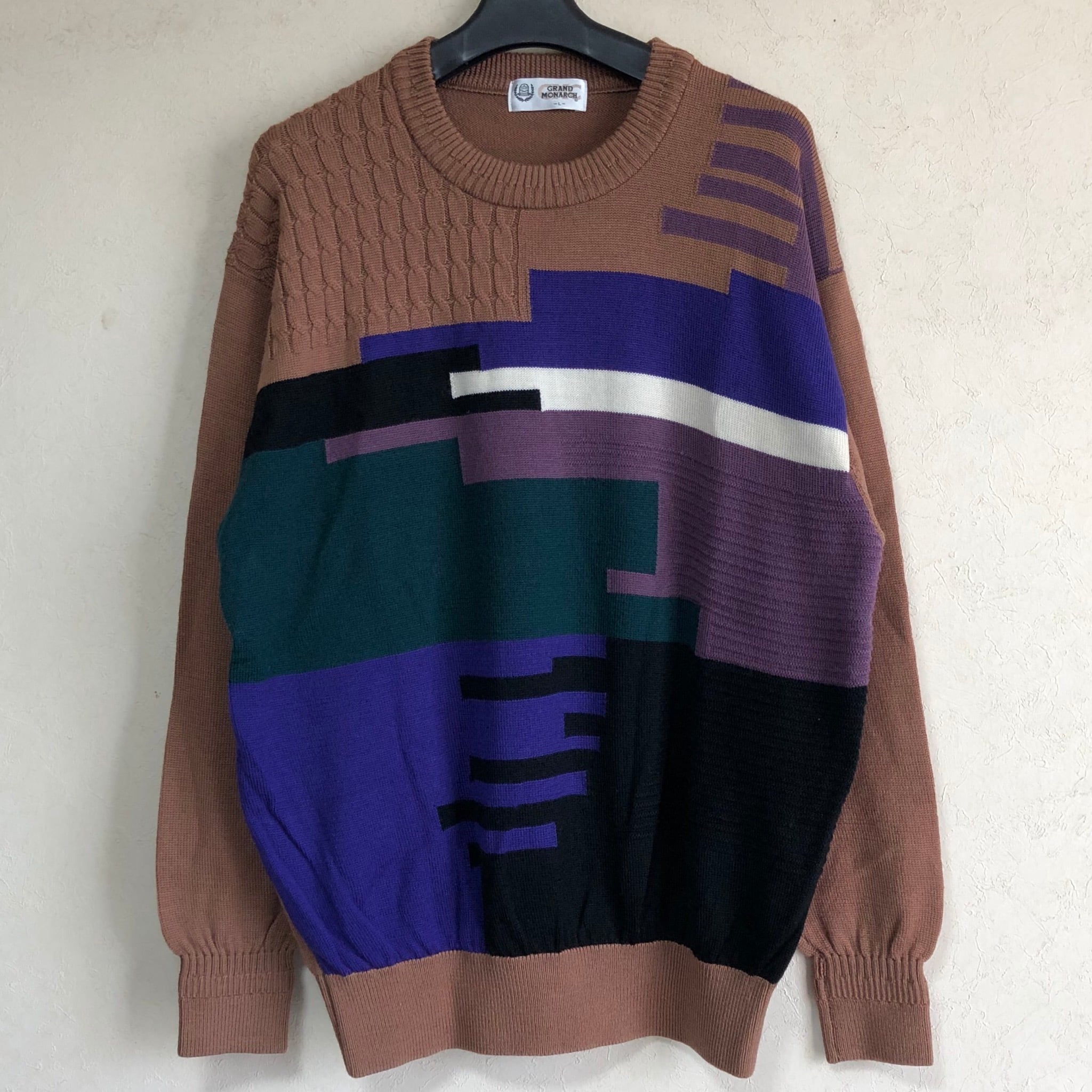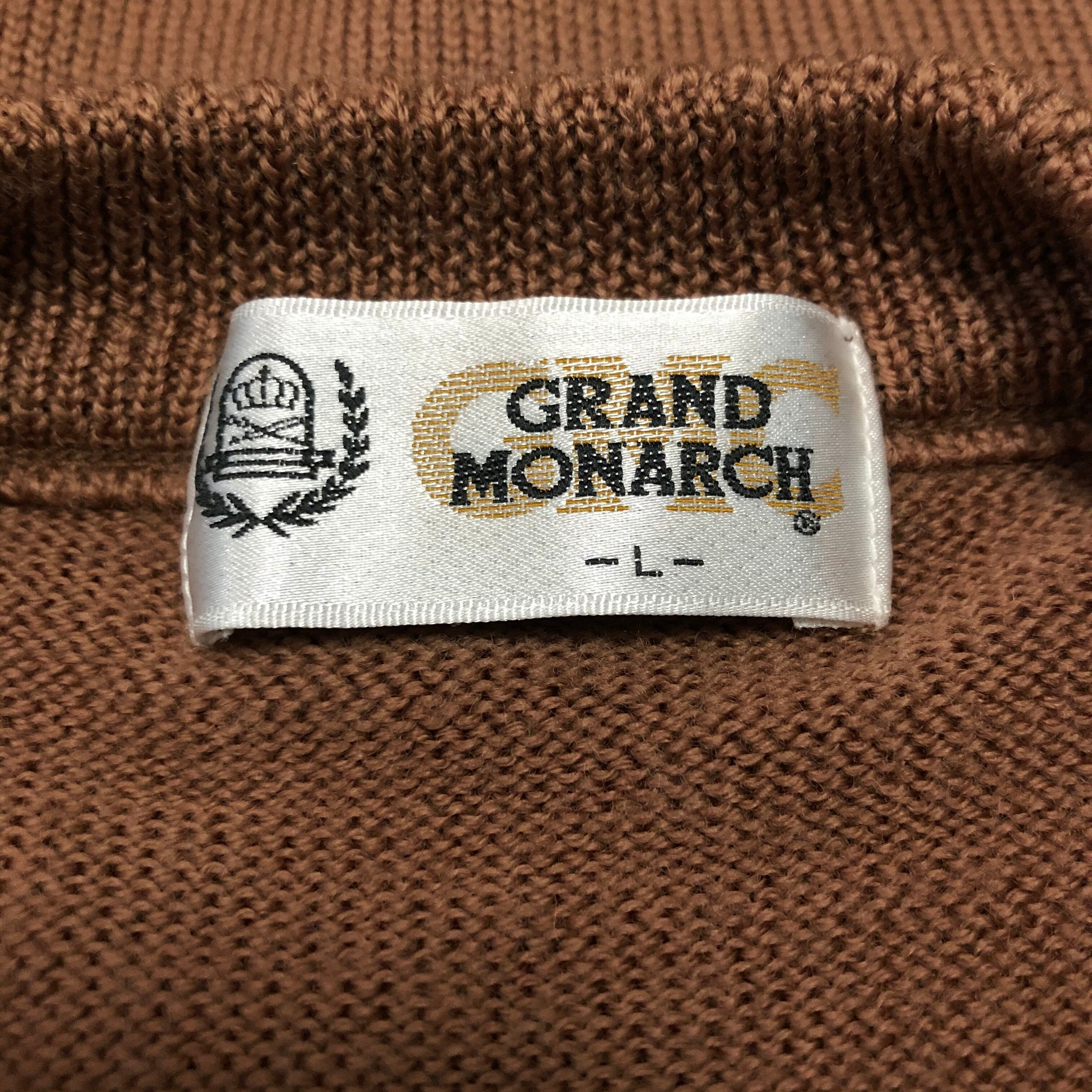【Lサイズ】90's GRAND MONARCH by mizono ゴルフライン 太畝畝編み込み 細畝畝入り ニットセーター