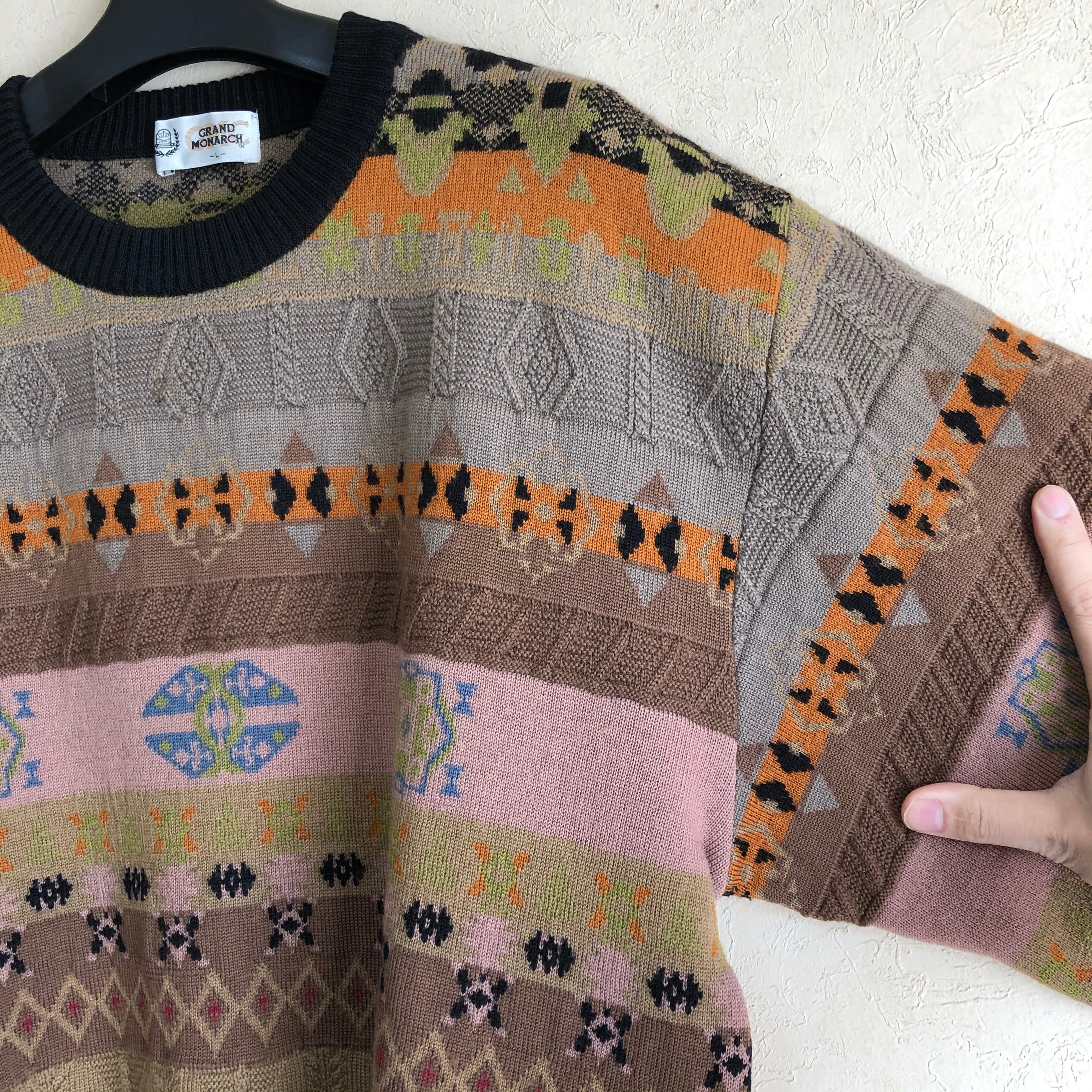 【Lサイズ】90's GRAND MONARCH by mizono ゴルフライン マルチカラー マルチ柄 ニットセーター