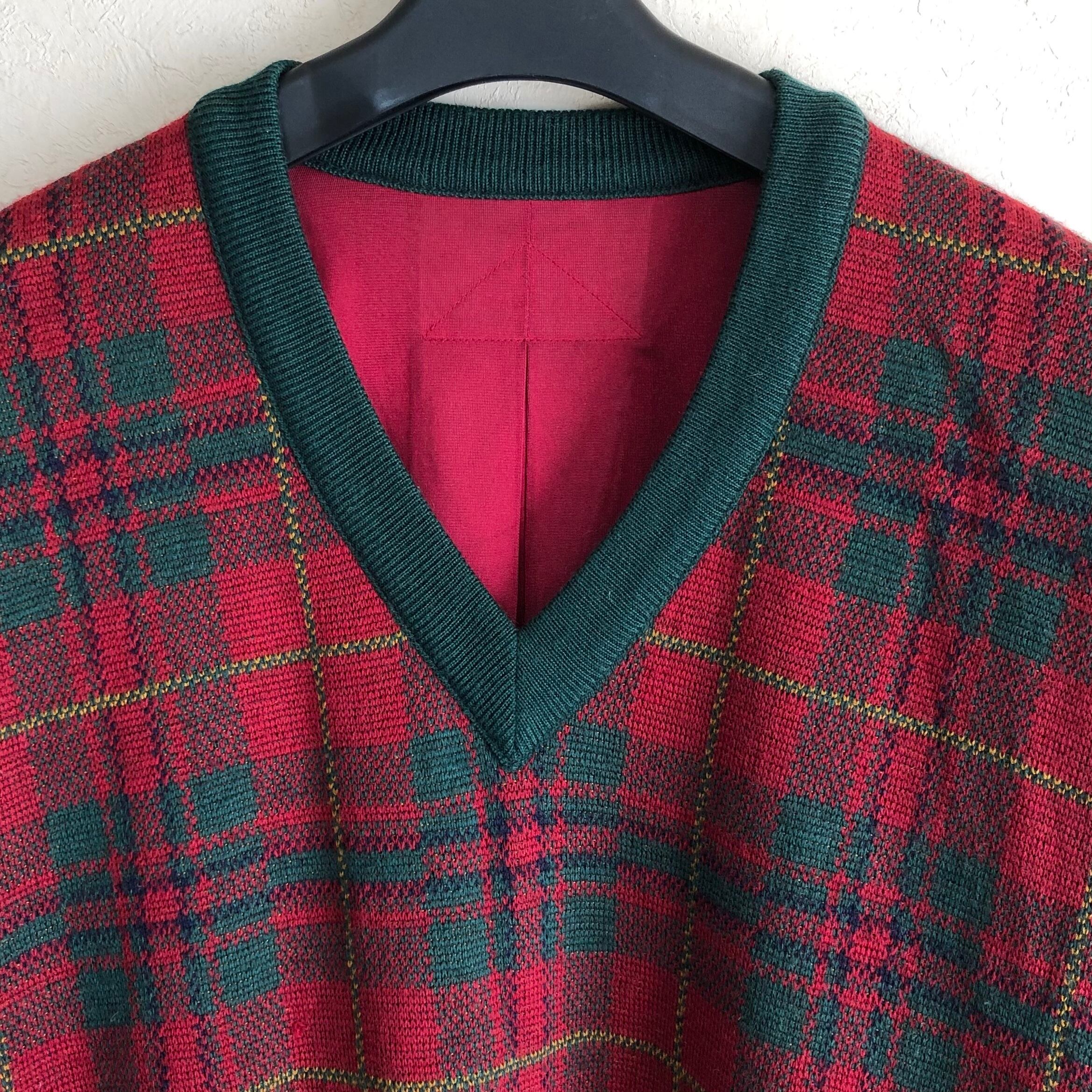 【Lサイズ】DAKS GOLF 裏地付き チェック柄 Vネックニットセーター