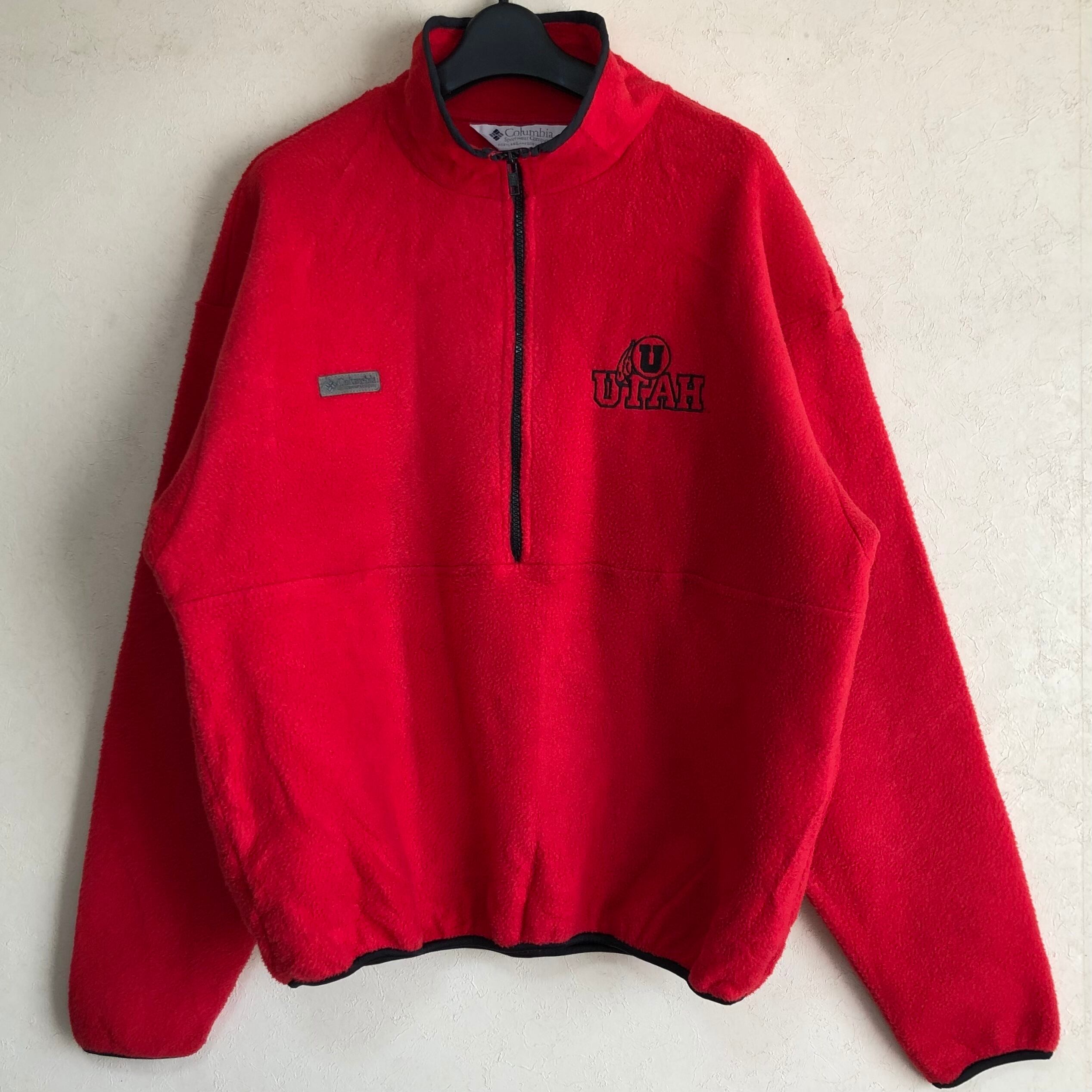 【Lサイズ】USA製 90's Columbia ユタ大学 ハーフジップ フリースジャケット USカレッジもの