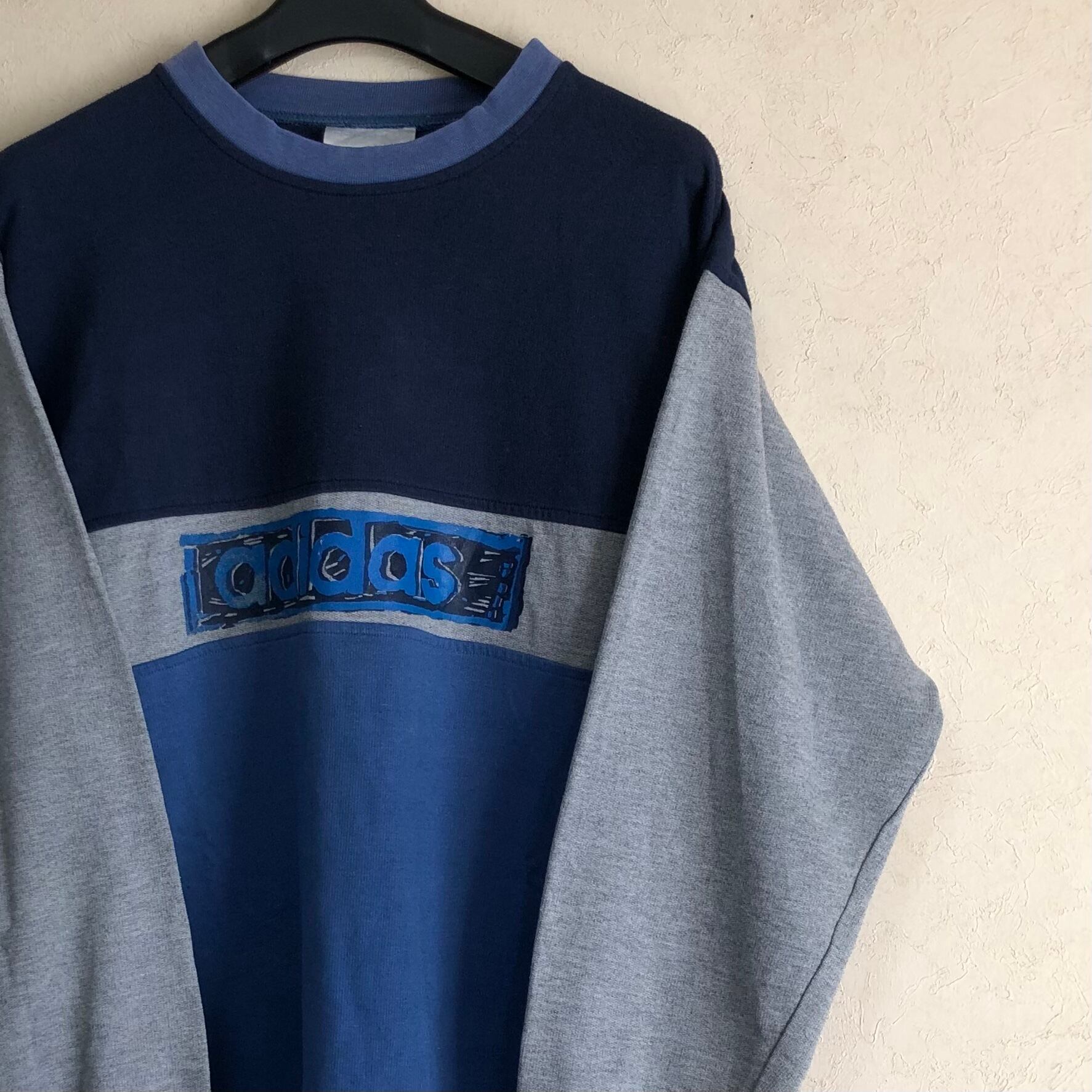 【XLサイズ】90’s アディダス ライトスウェット ボックスロゴ 切り替え生地 年代ものの古着