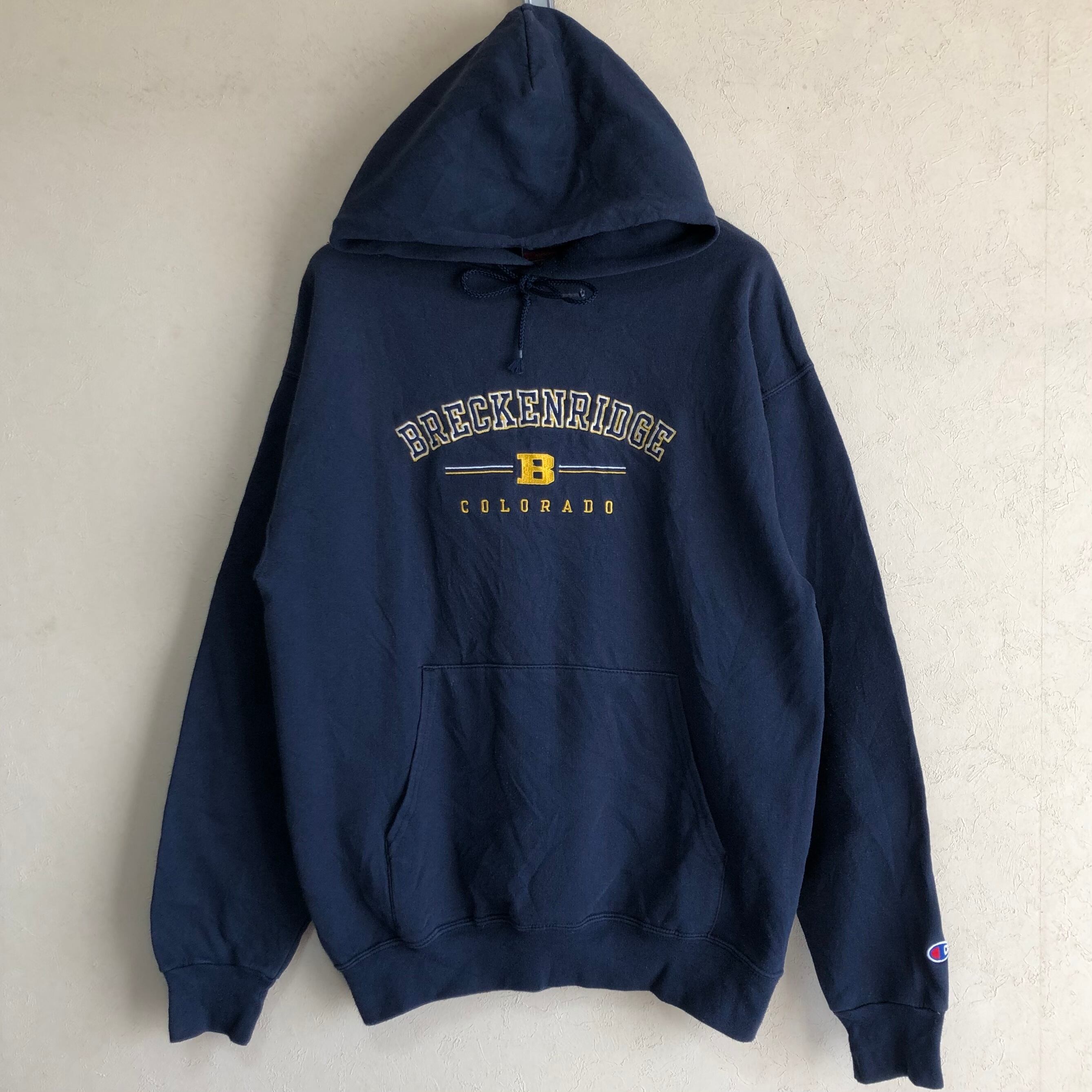 【Mサイズ】Champion US企画 × "BRECKENRIDGE" オール刺繍 パーカー