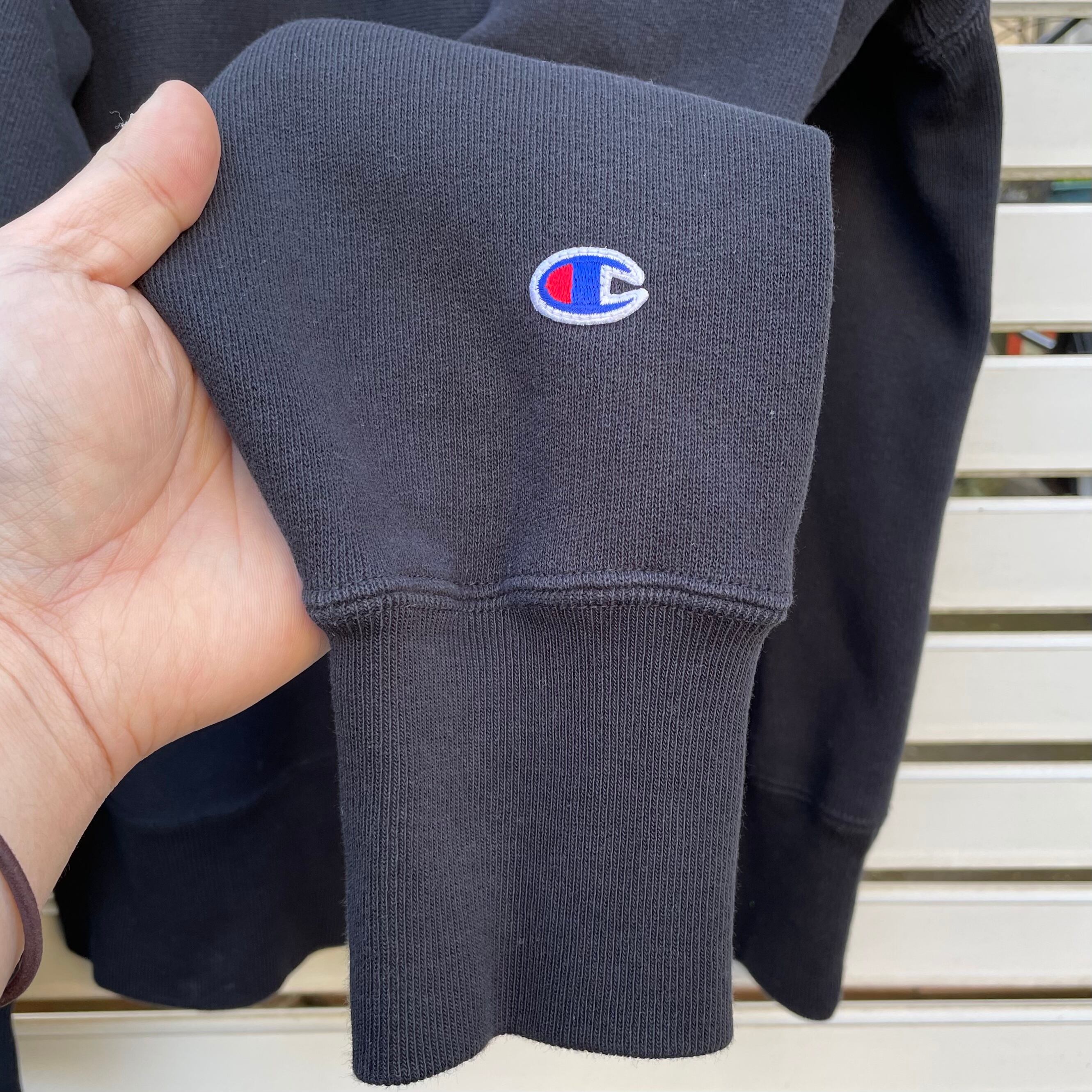 【Lサイズ】Champion REVERSE WEAVE コアロゴ刺繍 スウェット 黒×銀