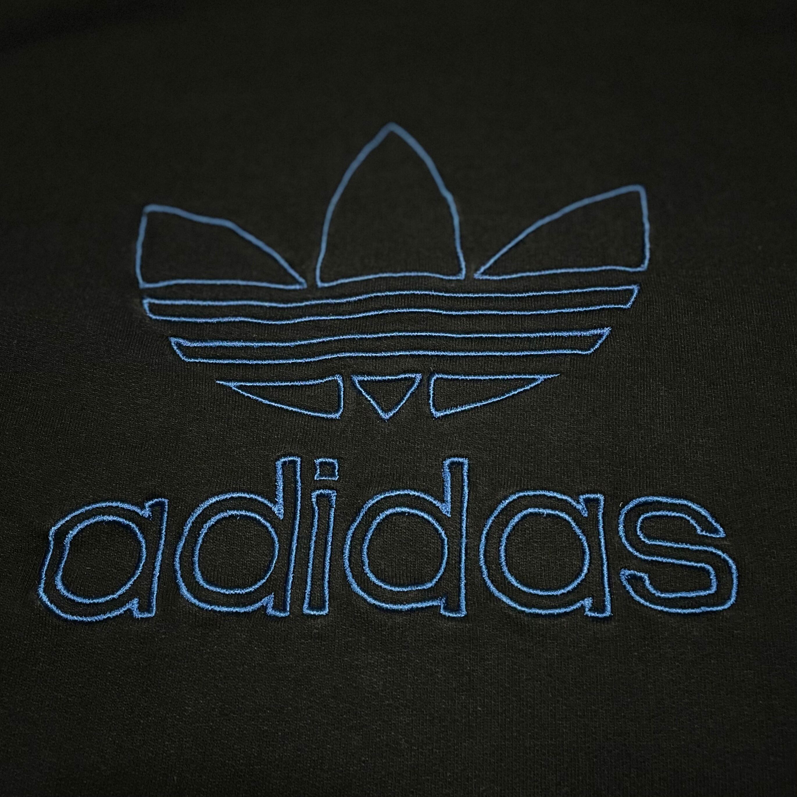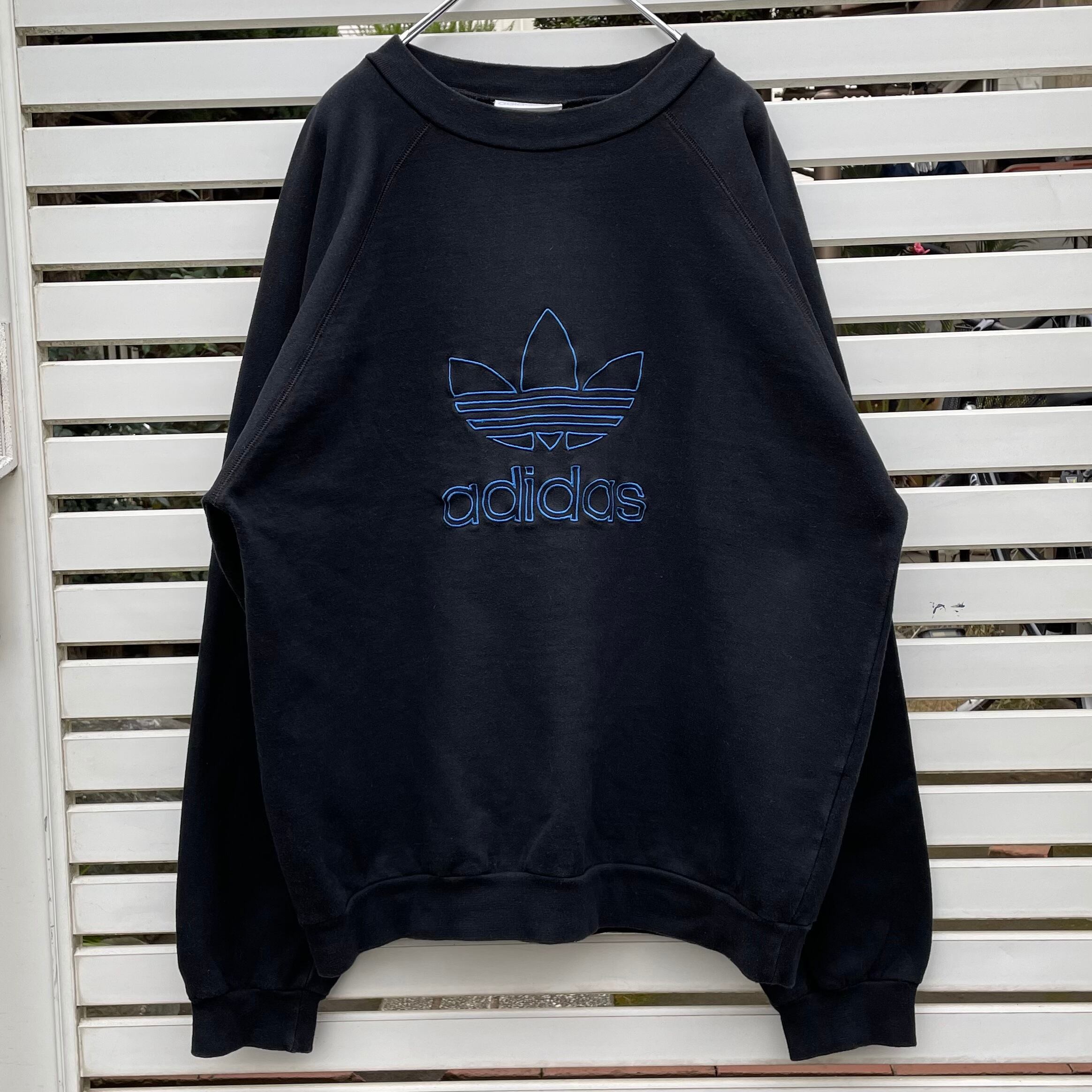 【Mサイズ】90's adidas 旧ロゴアウトライン刺繍 スウェット 黒×青
