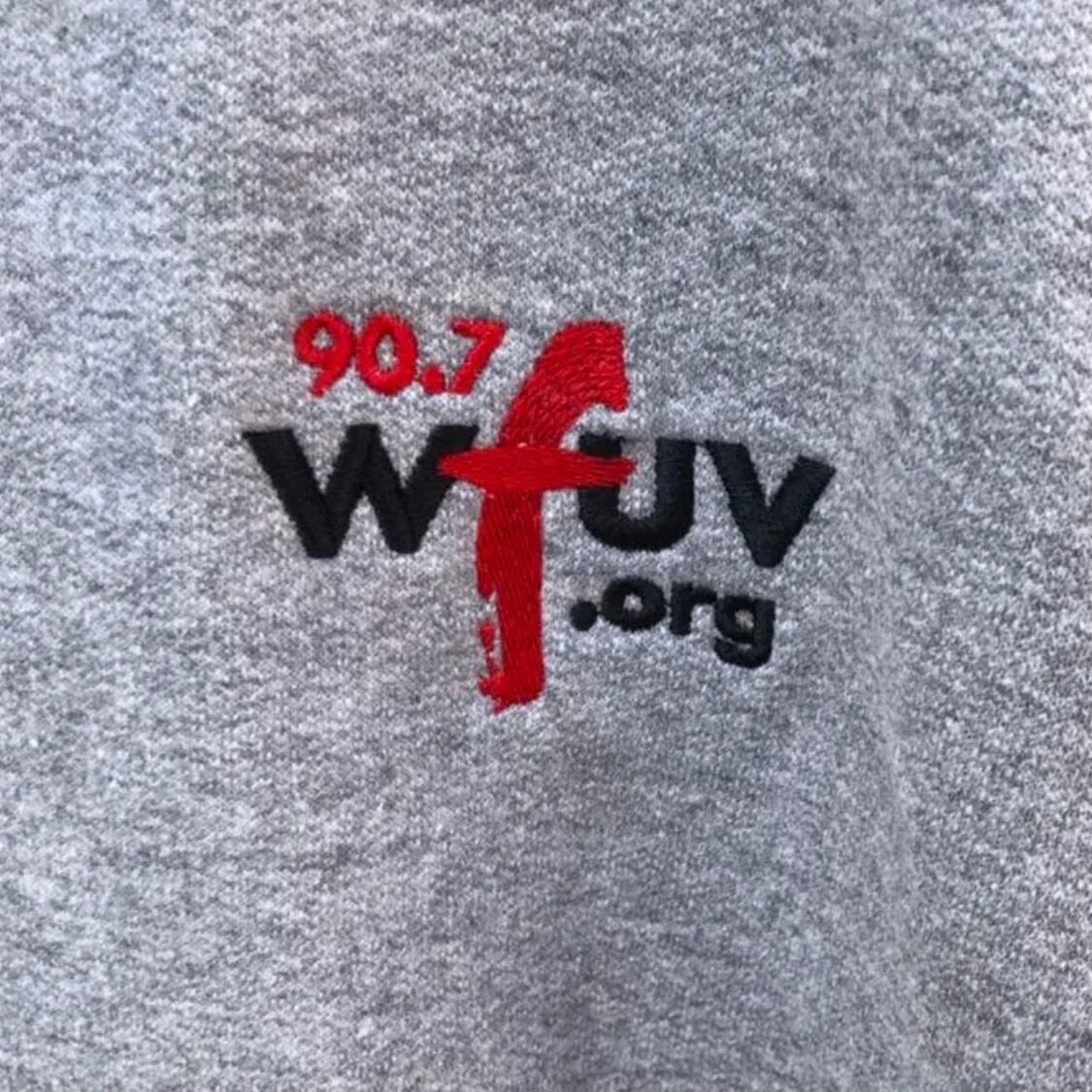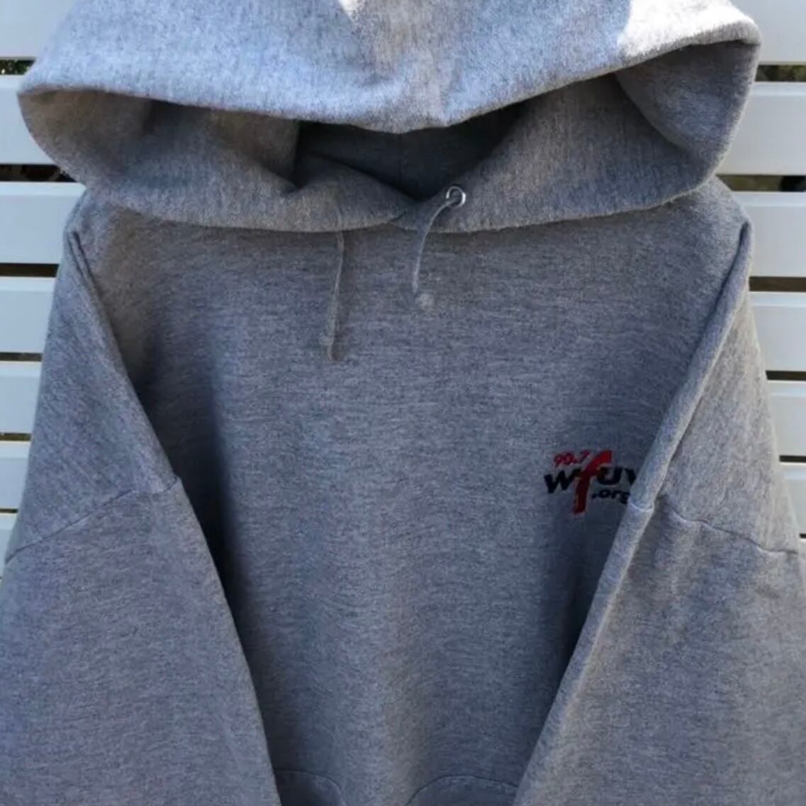 【XLサイズ】90's NYローカルラジオ局 "wfuv" 刺繍 パーカー US企業もの
