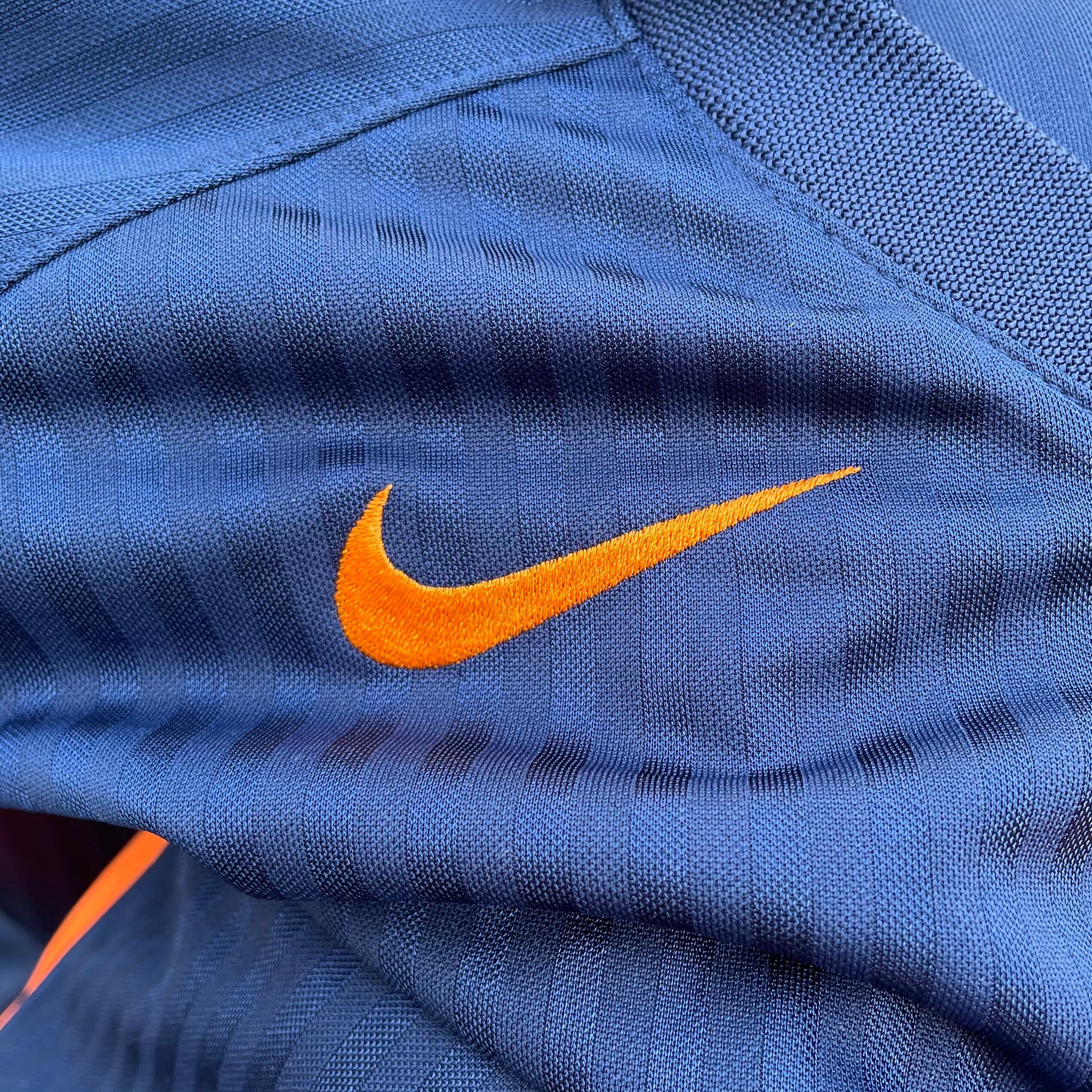 【XLサイズ】NIKE ロゴ刺繍 ジャージ 紺×橙 ストライプライン入り生地