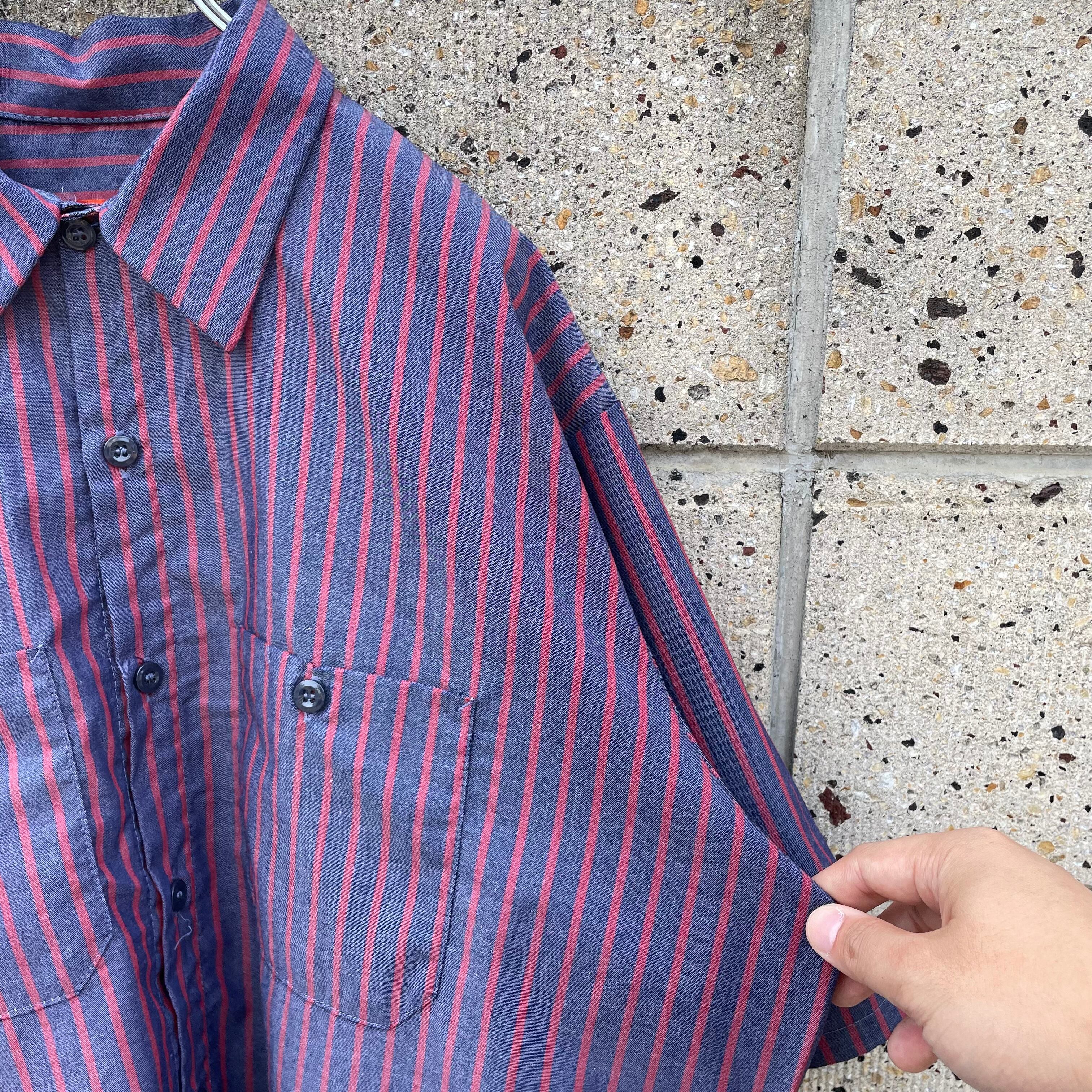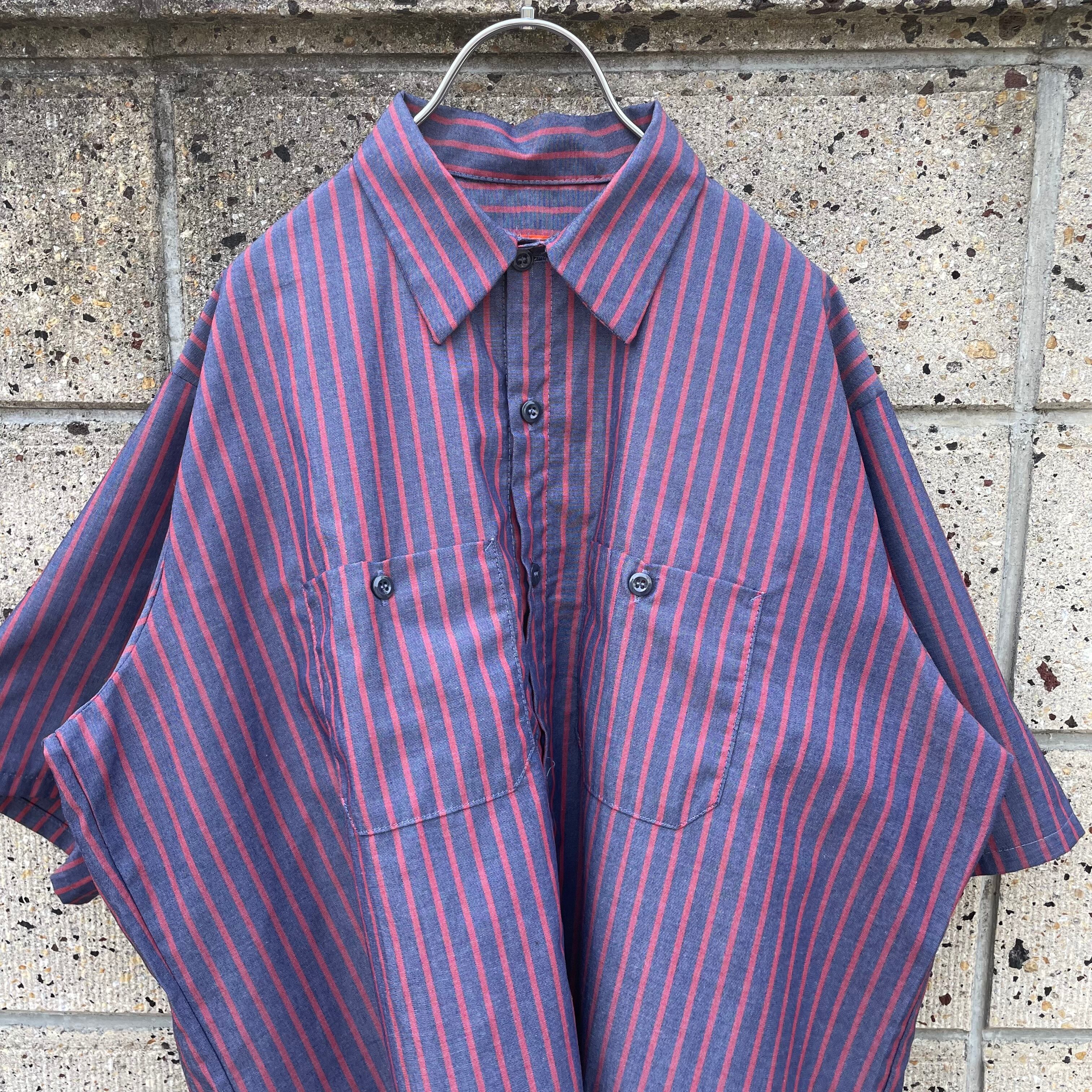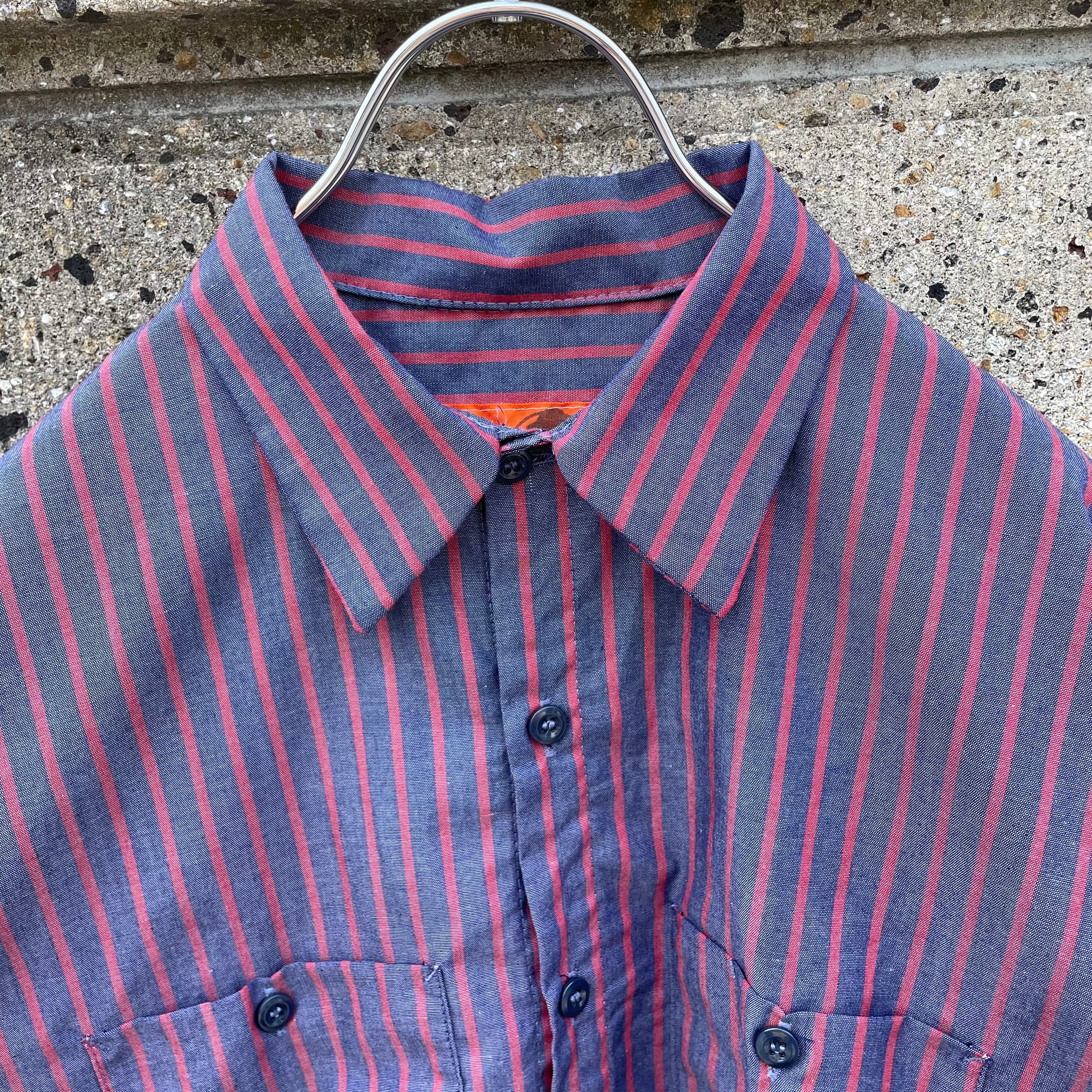 【Lサイズ】RED KAP レッドキャップ 大きめサイズ ストライプ柄 パリッと生地 ワークシャツ