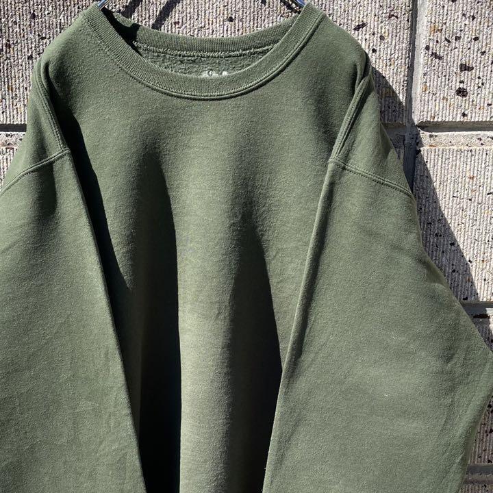 FRUIT OF THE LOOM あまり見かけないグリーン系 抹茶色の単色 無地 古着 スウェットになります。