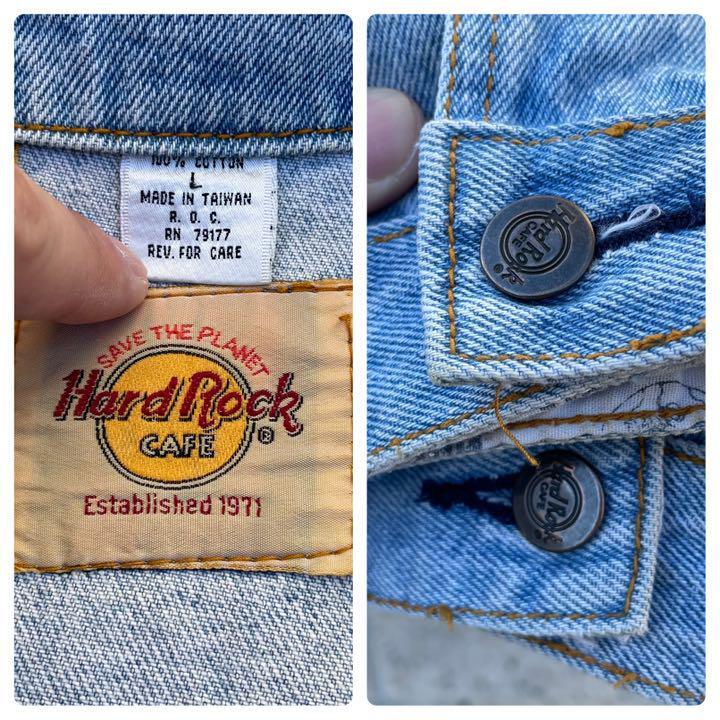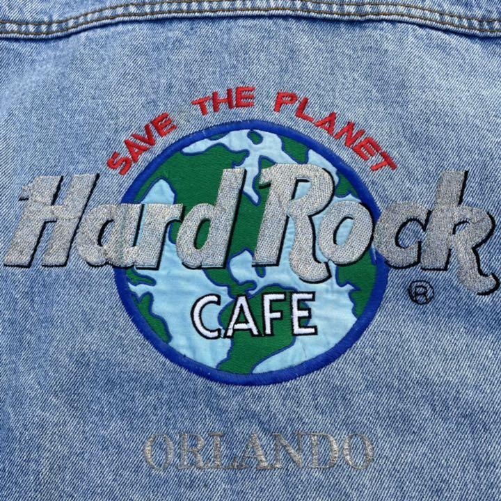 【Lサイズ】Hard Rock Cafe 90's デカロゴ刺繍 古着 デニムジャケット