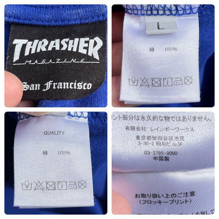 【Lサイズ】THRASHER フロッキープリント 非対称カラー 古着 ロングスリーブTシャツ