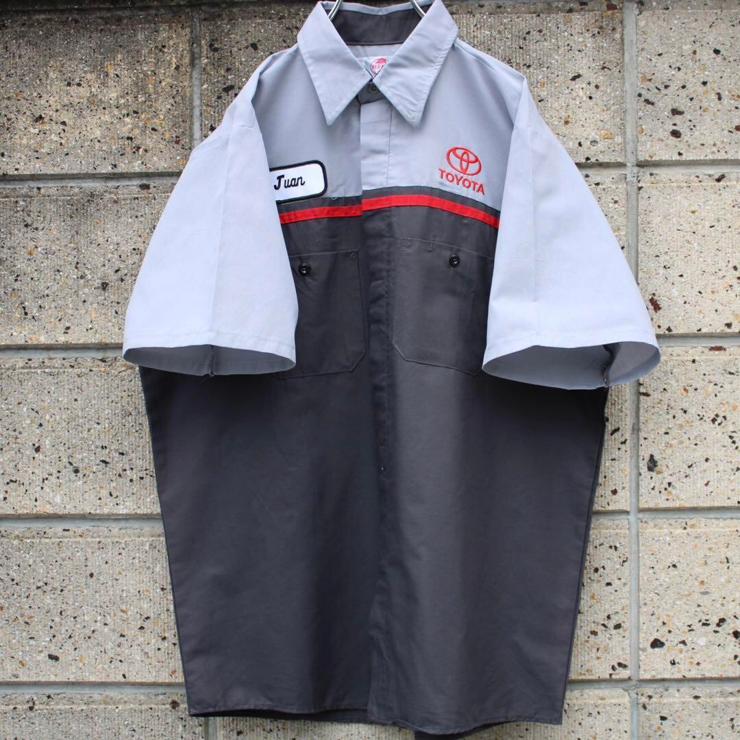 【Lサイズ】US TOYOTA 2Pエンブレムロゴ刺繍 RED KAP社製 古着 ワークシャツ