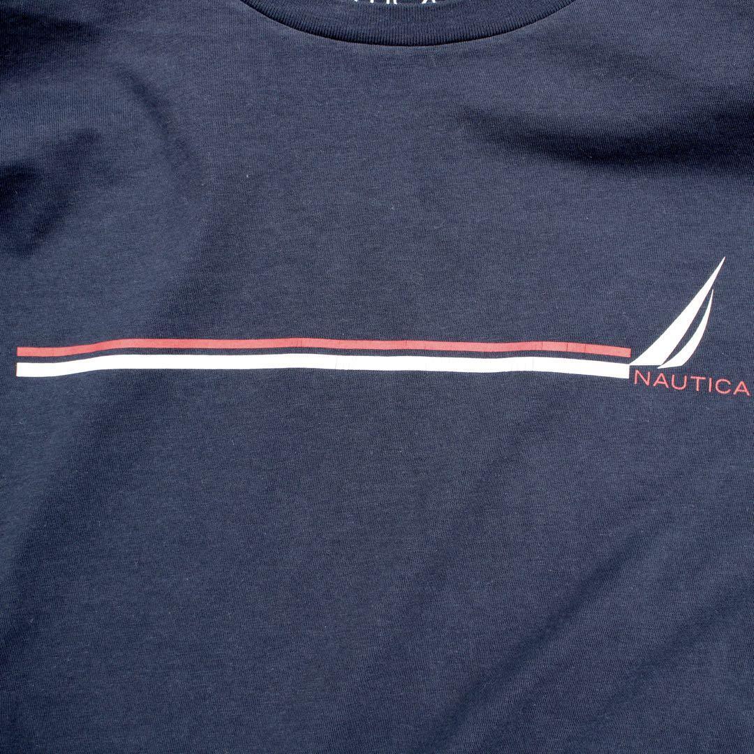 NAUTICA 左胸にブランド名 ロゴがプリントで入る、XXLサイズ ビッグサイズの古着 Tシャツになります。