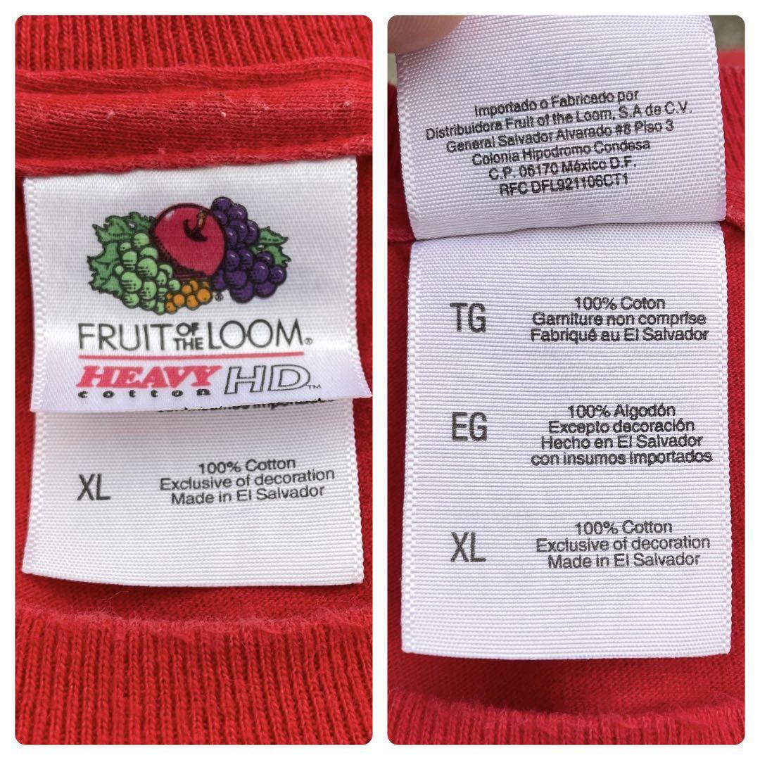 レッド × ホワイトのとてもシンプルなデザインのXLサイズ 大きめサイズの古着 Tシャツになります。