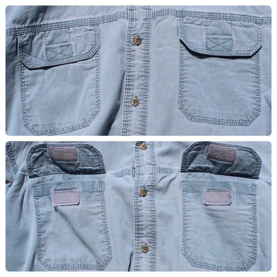 この種類のシャツは元々、経年変化がモデルデザインのようなとても古着らしい色味や色落ち褪せ、スレがとても良い感じのビッグシルエットシャツになります。
