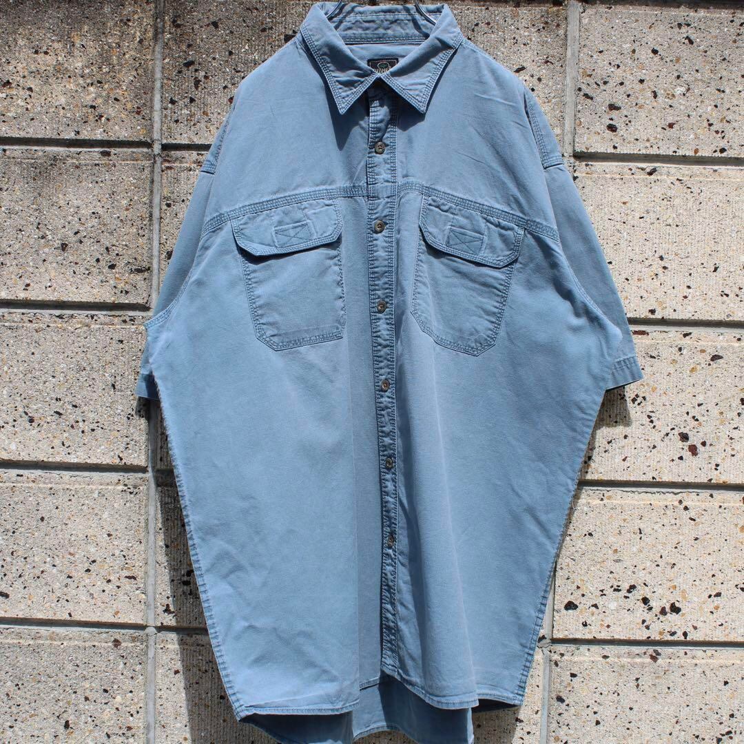 【XLサイズ】RED HEAD くすみカラー 淡青 ビッグサイズ ビッグシルエット 古着 半袖シャツ