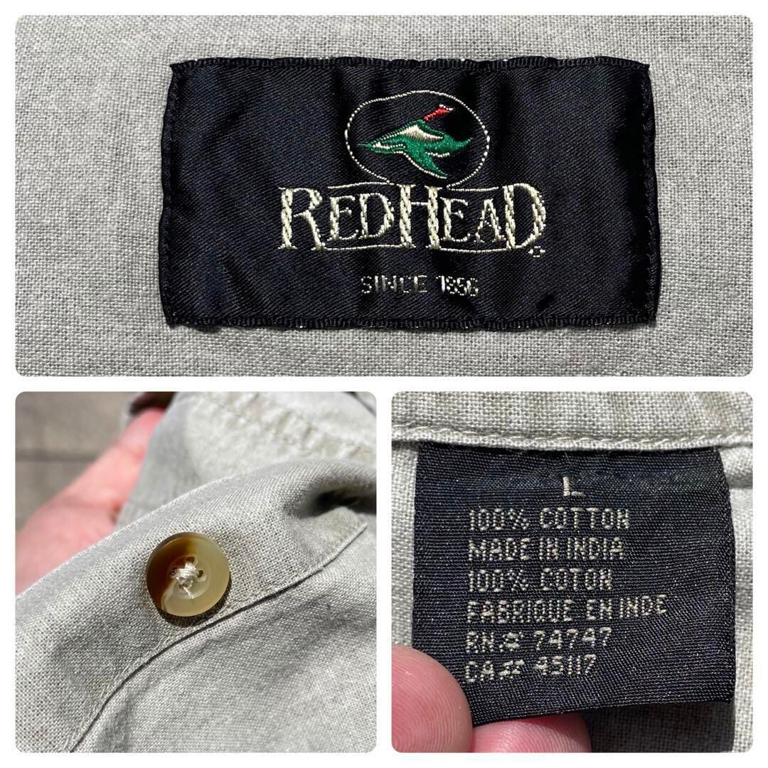 【Lサイズ】RED HEAD くすみカラー ベージュ系 ゆったり大きめサイズ 古着 シャツ