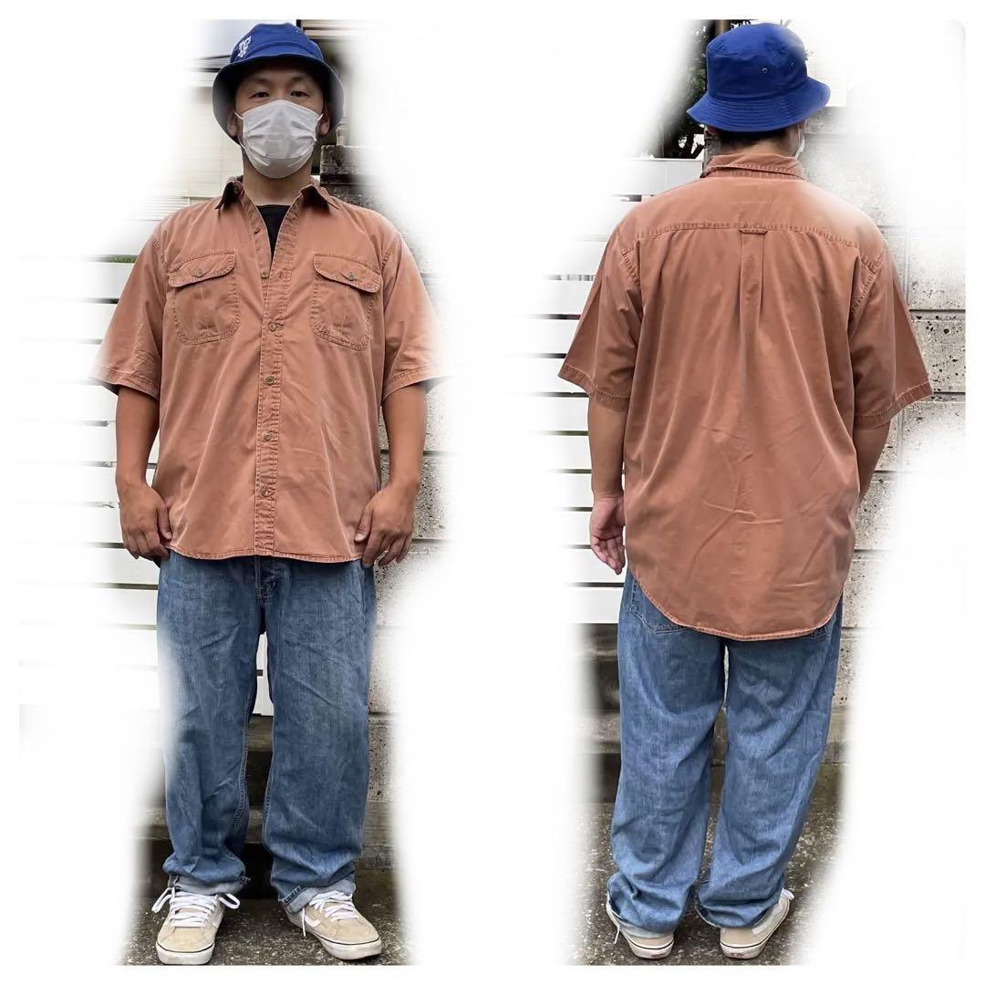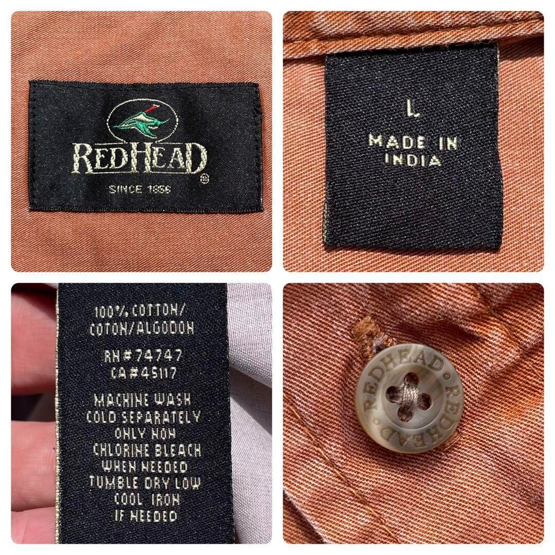 【Lサイズ】RED HEAD 茶色 くすみカラー 色落ち色褪せ◎ ゆったりサイズ 古着 半袖シャツ