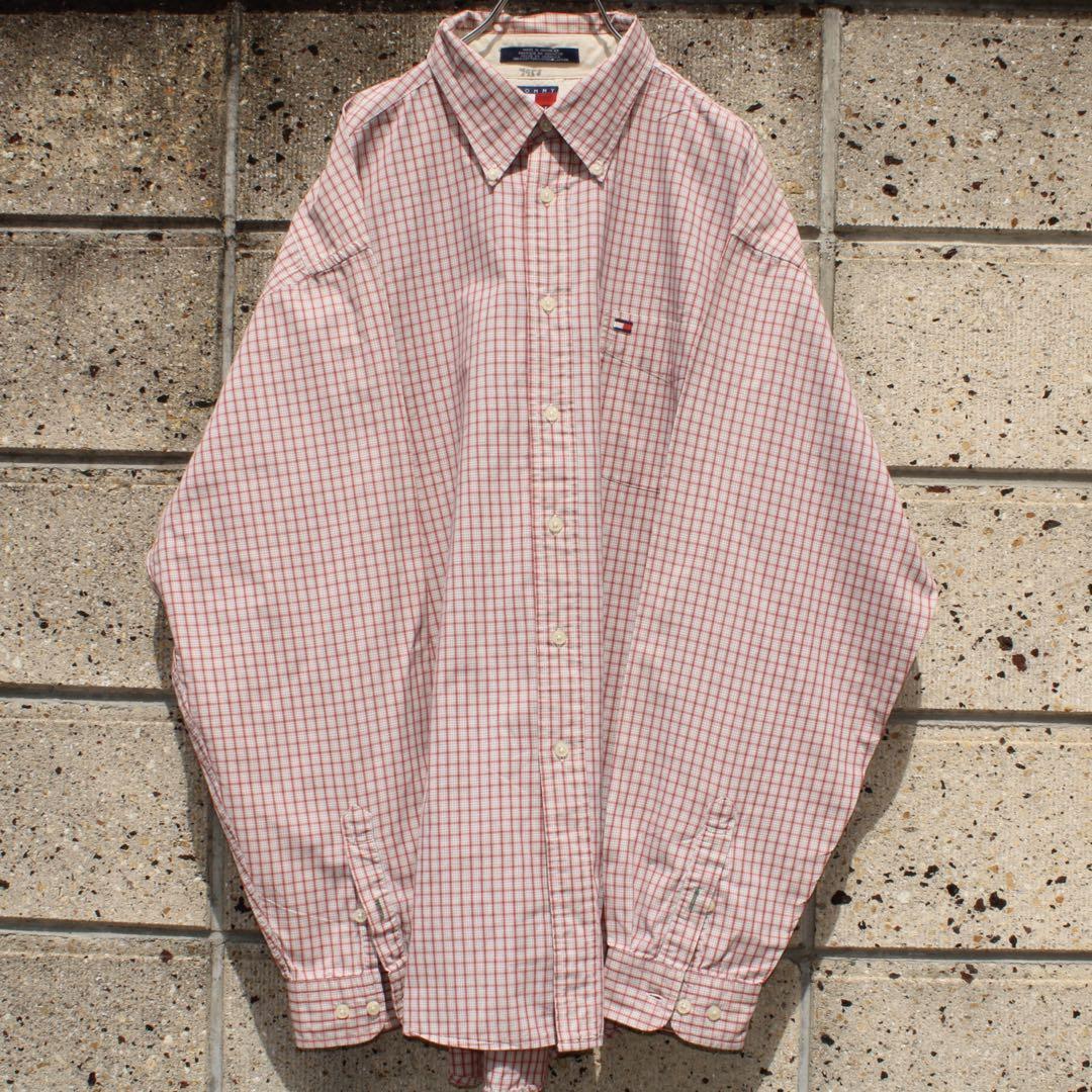 【XLサイズ】TOMMY HILFIGER 00's ロゴ刺繍 チェック柄 古着 L/Sシャツ