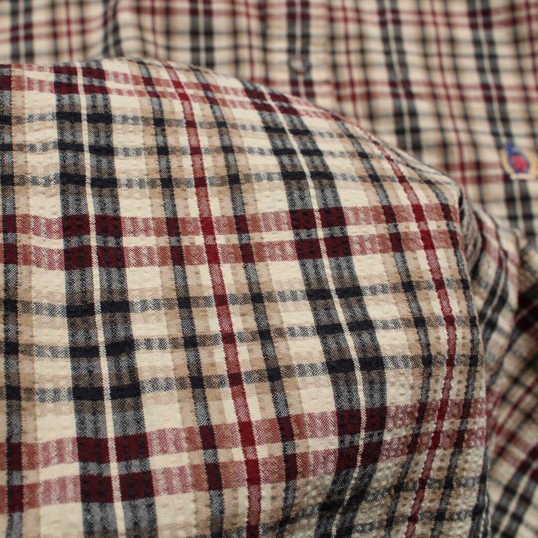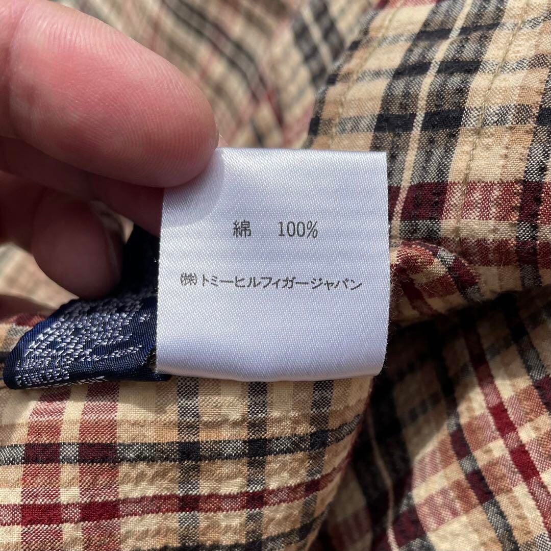 【Lサイズ】TOMMY HILFIGER 90's 旧ロゴ刺繍 シアサッカー生地 古着 L/Sシャツ