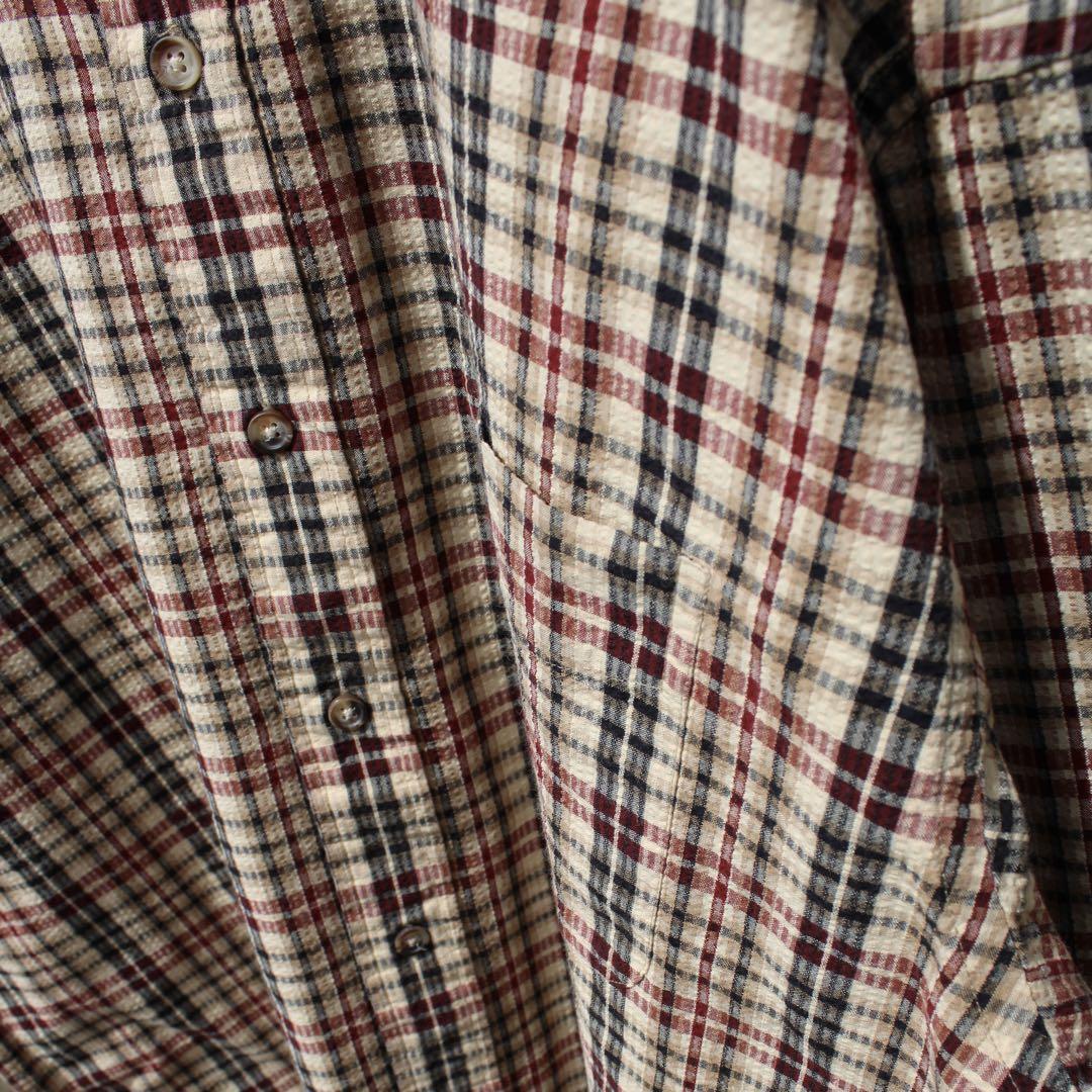 生地に細かな凸凹があるシアサッカーのような生地の1着です。