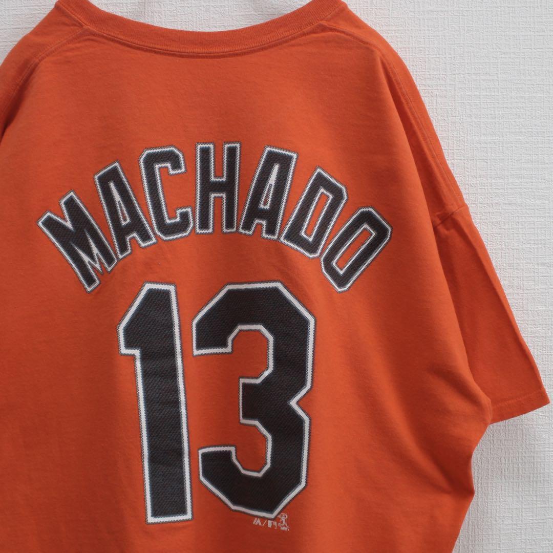 【XLサイズ】Majestic Baltimore Orioles MACHADO 13 オレンジベース 古着 Tシャツ