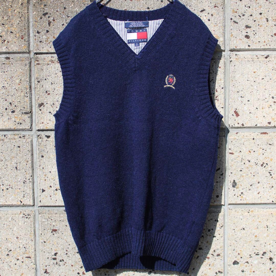 【Mサイズ】TOMMY HILFIGER 90's オールドロゴ刺繍 古着 ウールベスト
