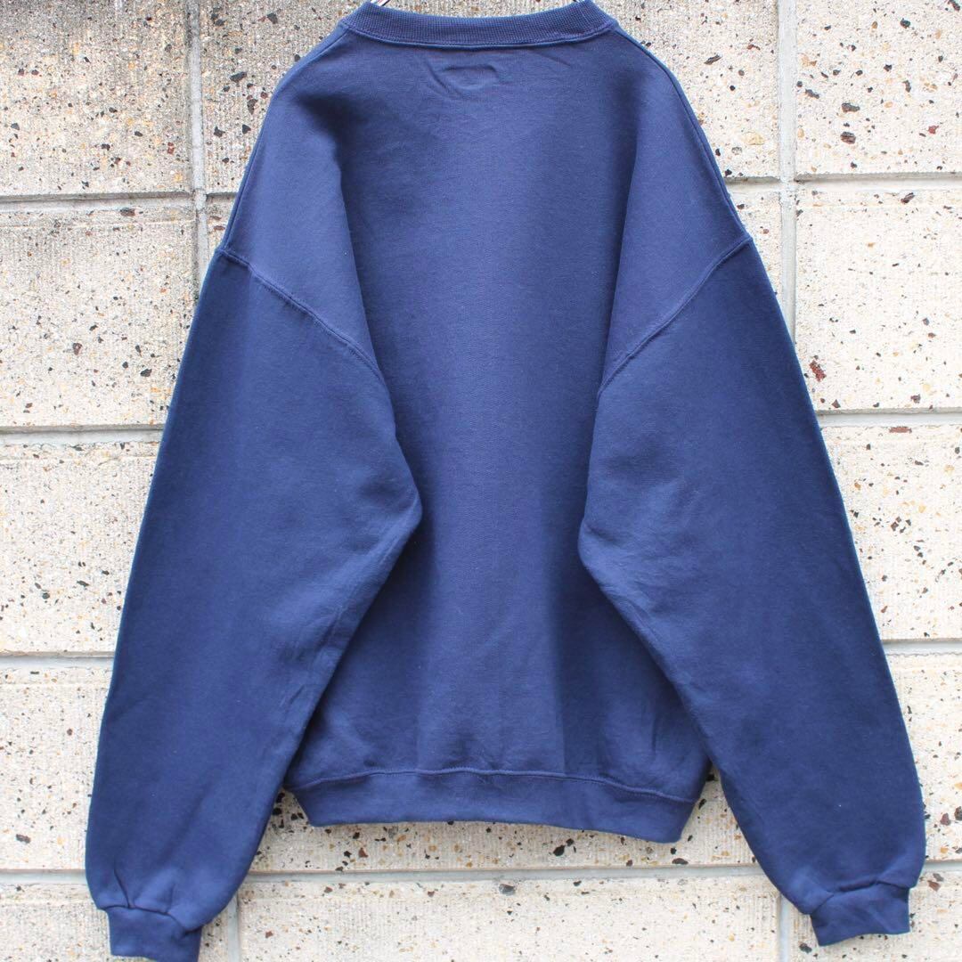 JERZEES ネイビー 単色 無地 の横幅 肩周り 袖幅などがゆったりとしたサイズ感の独特のシルエットの古着 スウェットになります。